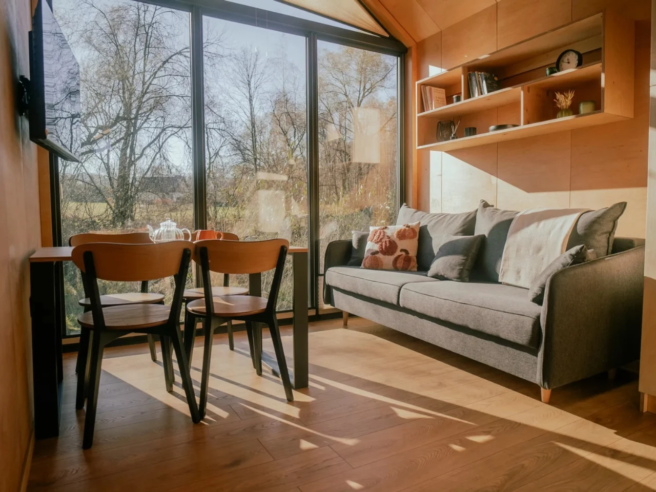 L’extérieur de la Zenith est revêtu de bois technique et surmonté d’un toit en aluminium, offrant un esthétique moderne et épuré sans la froideur d’une conversion de conteneur maritime. De grandes fenêtres et des lucarnes illuminent l’intérieur, donnant une impression d’espace même lorsque la superficie est limitée. La lumière naturelle y joue un rôle crucial et contribue à l’atmosphère accueillante de la maison.