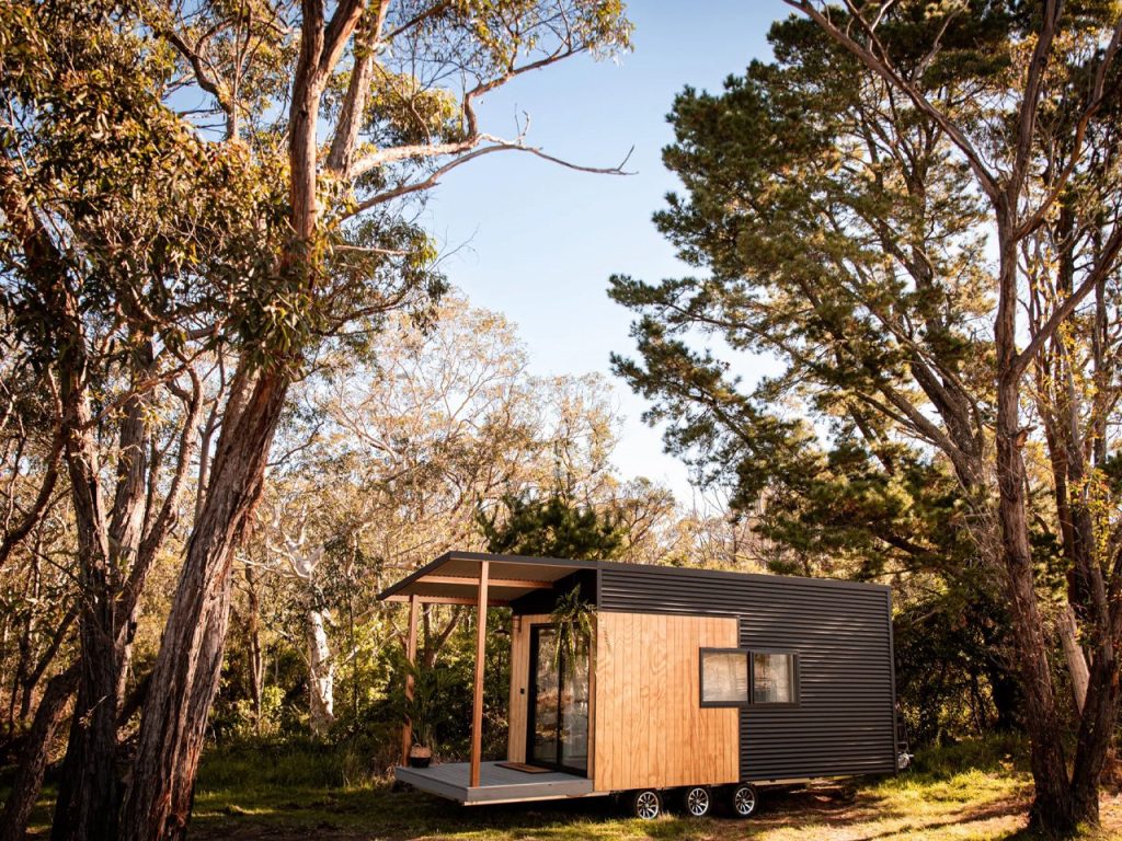 L’extérieur de la Bellbird combine habilement bois et métal, créant une esthétique à la fois contemporaine et chaleureuse. Cette maison miniature est non seulement un exemple de design moderne, mais elle est également adaptée à un style de vie simple et durable. Les grandes portes vitrées et les fenêtres généreuses permettent à la lumière naturelle d’envahir l’espace, accentuant ainsi la sensation de confort.