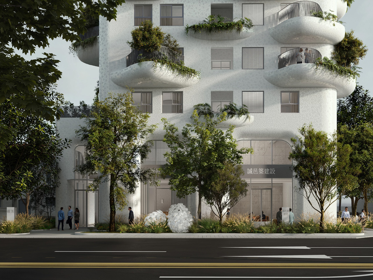 Soixante-seize appartements occupent les étages supérieurs, tandis que deux niveaux sont consacrés à des espaces commerciaux et à des commodités communautaires, y compris des salles à manger, des salons et des espaces de karaoké. L’accent mis sur la vie communautaire cible principalement les acheteurs de la classe moyenne et les jeunes couples. Les espaces partagés reconnaissent que la qualité de vie urbaine ne se limite pas aux unités individuelles, mais englobe l’interaction sociale et l’expérience collective. Les cinq balcons communautaires, répartis sur la hauteur du bâtiment, créent des lieux de rencontre favorisant l’interaction entre résidents et donnant accès à des espaces extérieurs végétalisés à différents niveaux.