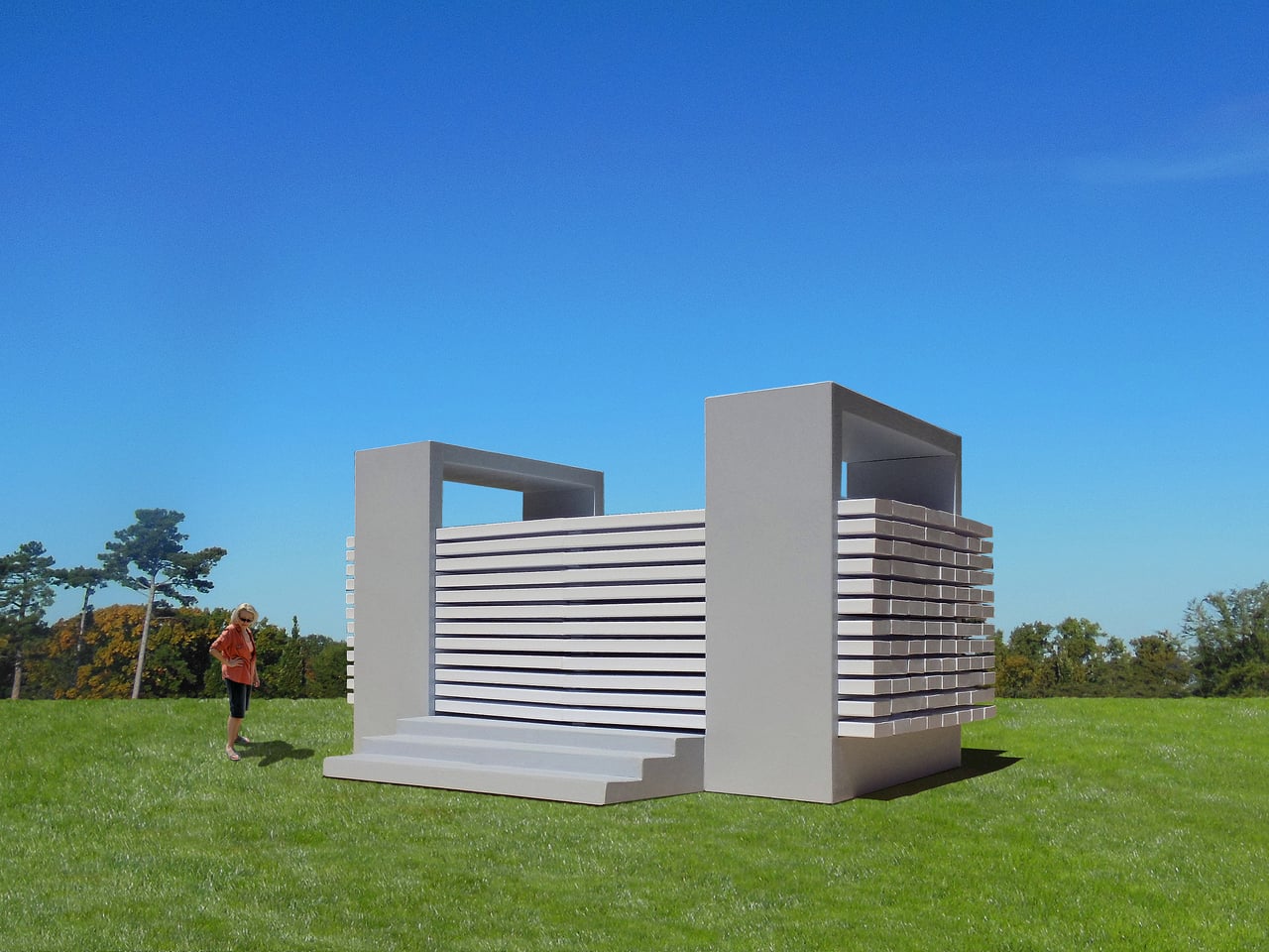 Le pavillon est constitué de 192 éléments horizontaux montés sur des rails, ce qui permet à chaque pièce de glisser indépendamment. Cela permet aux utilisateurs de créer différentes configurations, allant de la simplicité symétrique à des formes plus complexes.