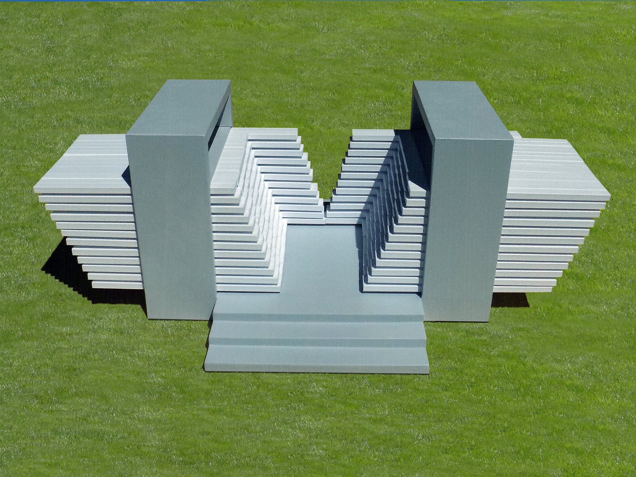Une fois à l’intérieur, vous pouvez vous retrouver dans un canyon symétrique avec des murs en terrasses et un lucarne rectangulaire. À la minute suivante, vous êtes dans une chambre pixelisée irrégulière, où la lumière se fraie un chemin à travers des interstices inattendus. Les éléments servent également de bancs et de toits bas, permettant de créer un espace de repos ou d’ombre en un geste simple. Le pavillon devient alors un lieu de rencontre, de jeu, et d’expérimentation, où chaque configuration suggère de nouvelles manières d’occuper le même espace.