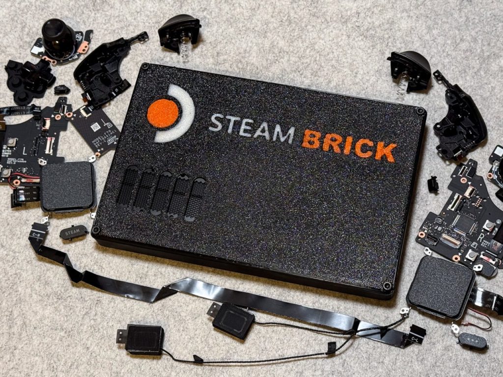 Le Steam Brick est une solution DIY qui modifie la Steam Deck en retirant l’écran et les contrôleurs, tout en réduisant la taille du cadre métallique. La plupart des composants essentiels, y compris la batterie, sont ensuite enfermés dans un boîtier imprimé en 3D, transformant ainsi l’appareil en une sorte de mini PC portable.