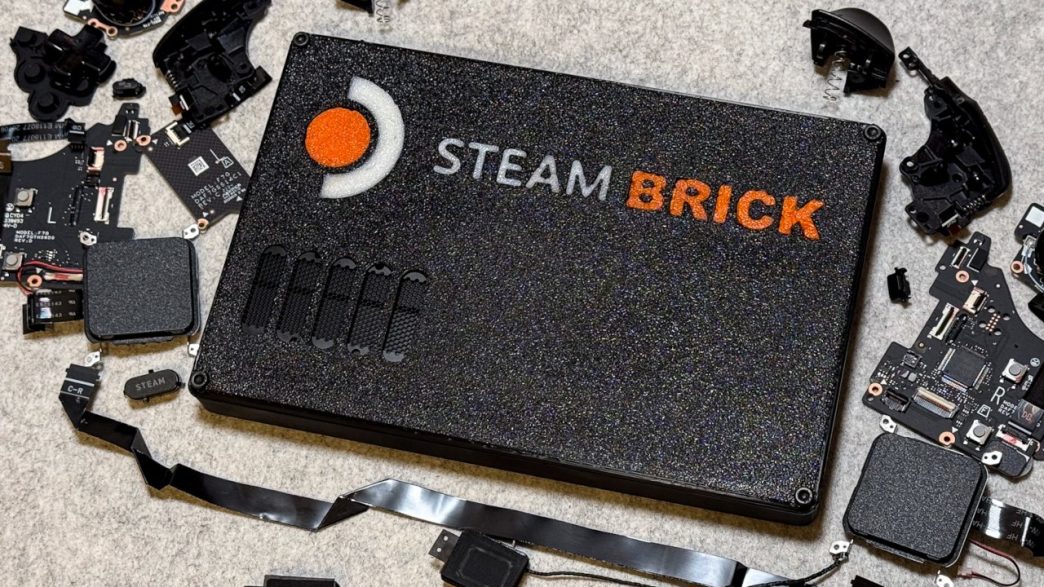 Le mod, nommé Steam Brick, consiste à transformer le Steam Deck en une simple brique, presque littéralement. En effet, il retire l’écran et les contrôles, réduit le cadre en métal à une taille adéquate et réintègre les composants essentiels, y compris la batterie, dans un boîtier imprimé en 3D. Bien que l’appareil fonctionne toujours, il ressemble désormais à un mini-PC avec une batterie intégrée.