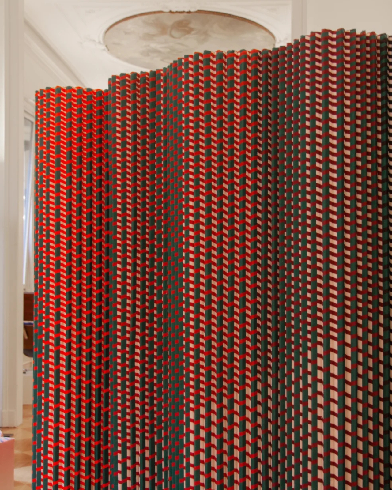 Il s’agit d’une réunion fascinante des savoir-faire traditionnels et des applications contemporaines, abordant des problématiques actuelles telles que la division d’espace flexible, l’absorption sonore, l’utilisation de matériaux durables, et l’intérêt visuel dans nos habitations.