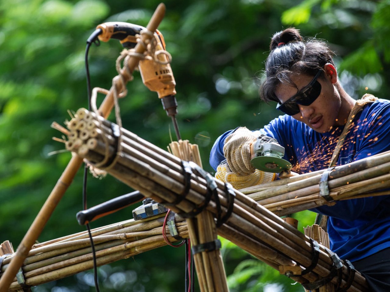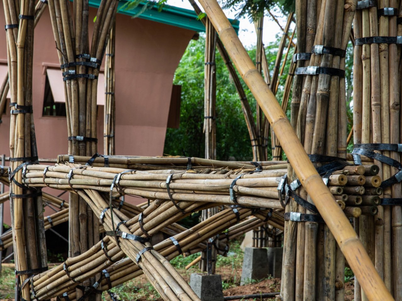 Les maisons sont construites avec des cadres en bambou interlockés qui absorbent les chocs sismiques. Cela a été validé lors du tremblement de terre de 7,7 qui a frappé la région en mars 2025.