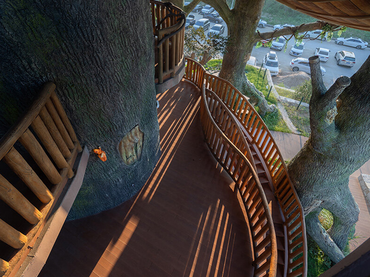 Une fois à l’intérieur, l’expérience est transformée. Des systèmes domotiques et des réseaux numériques gèrent les aspects techniques, tandis que de grandes baies vitrées offrent des vues imprenables sur la canopée environnante. Les courbes intérieures reprennent les lignes organiques de l’extérieur, rendant ces unités de micro-habitat étonnamment spacieuses. L’objectif de Doarchiwow était de résoudre un problème délicat : comment produire en masse tout en conservant un aspect personnalisé ? La structure standardisée permet une construction efficace, mais les espaces intérieurs ont été conçus pour paraître sur mesure. Ces capsules fonctionnent comme des retraites individuelles, tout en s’intégrant dans un réseau plus vaste.