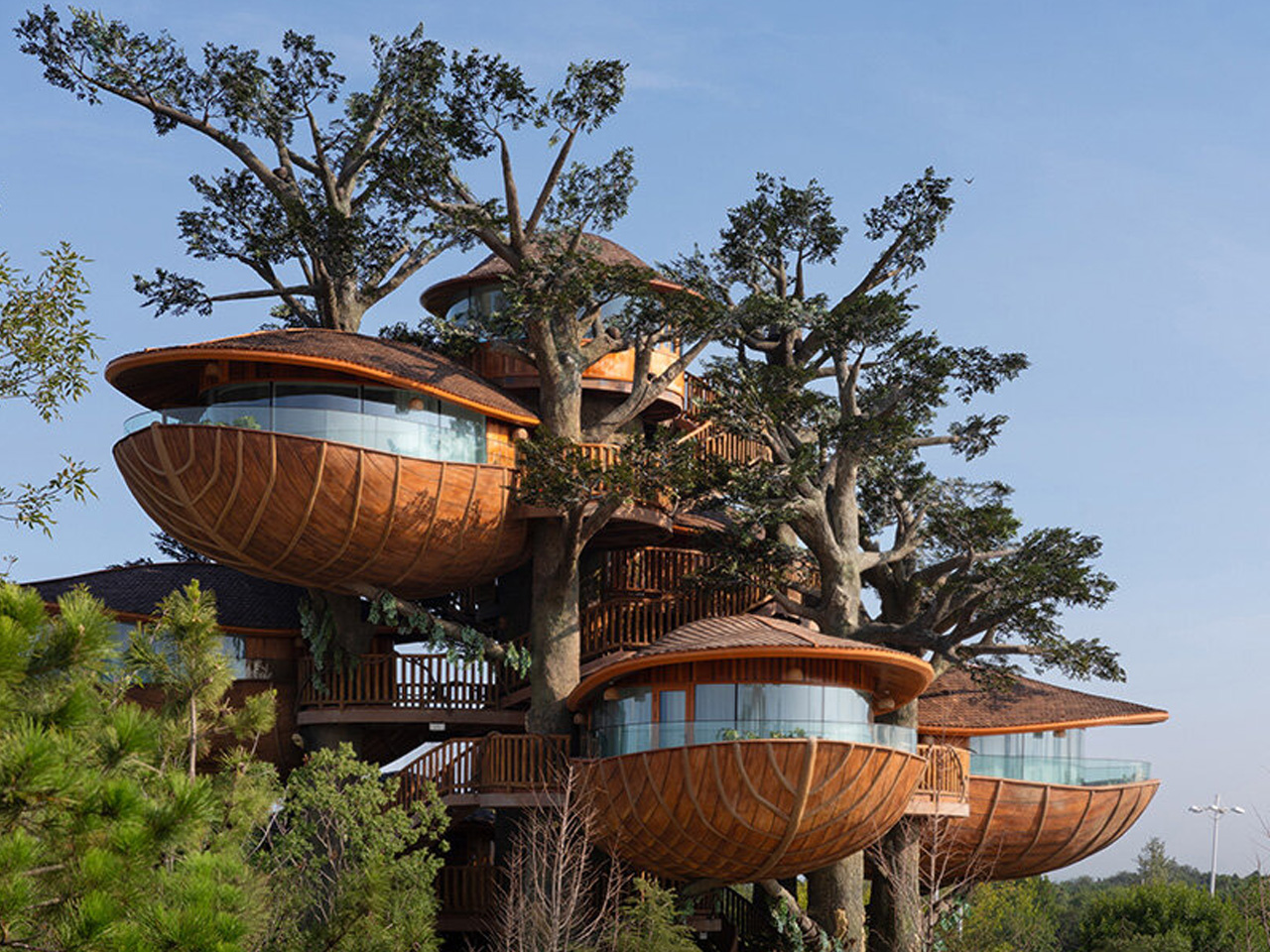 Le projet Forest Nests Treepod, conçu par Doarchiwow, est une nouvelle vision architecturale située dans les parcs d’attractions Senbo en Chine. Il s’agit de maisons modulaires qui intègrent l’art à la construction préfabriquée, avec des structures qui s’érigent comme des organismes sculpturaux.