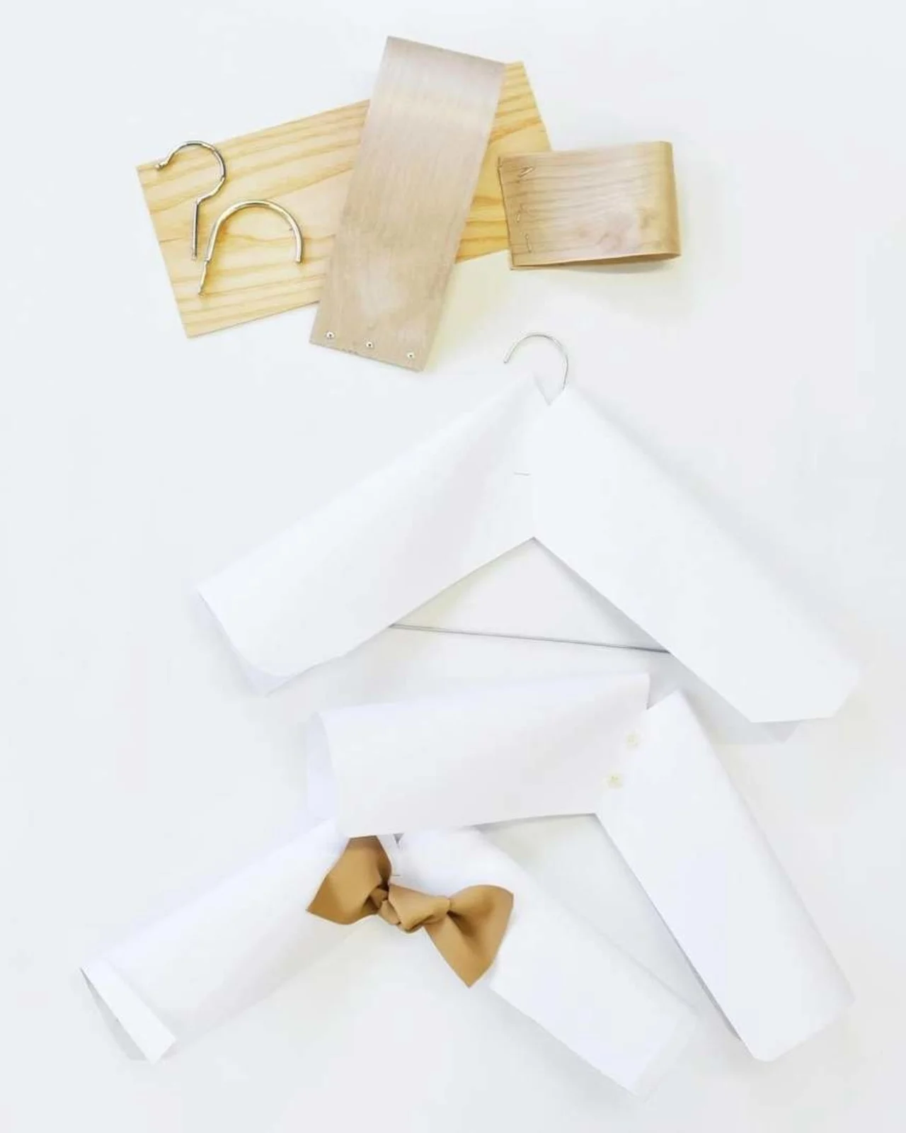Le cintre en question est fabriqué entièrement en placage de bois, offrant un design à la fois sculptural et délicat. Contrairement aux cintres en bois traditionnels, il ressemble plus à une œuvre d’art qu’à un objet fonctionnel.