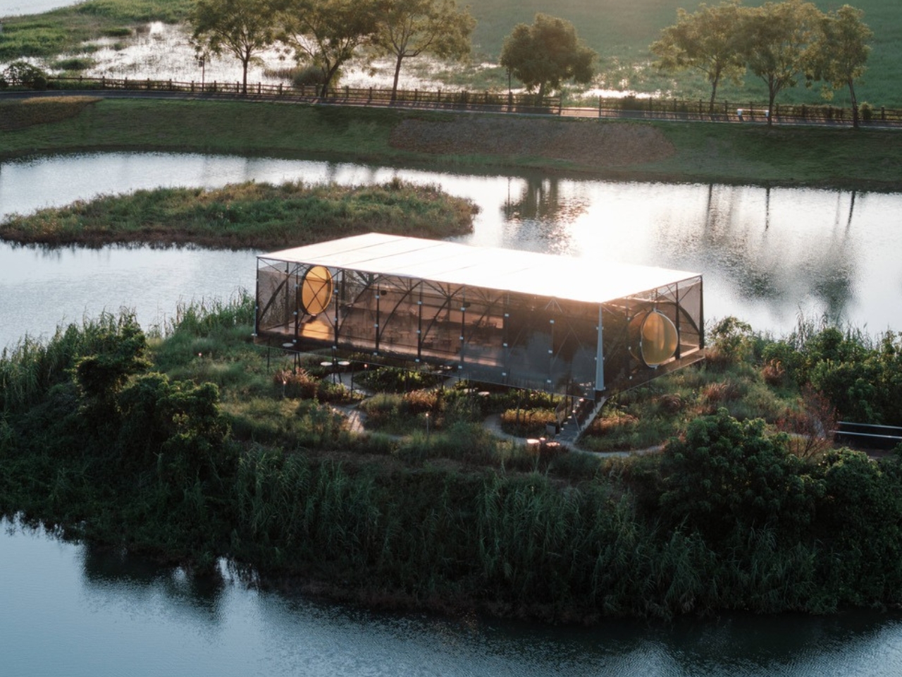 À Huizhou, en Chine, l’Atelier Guo, basé à Shanghai, a métamorphosé une serre abandonnée en un pavillon futuriste, le Pavillon de la Lune. Ce projet exceptionnel s’inspire d’un ancien poème chinois sur un poète ivre et souriant au milieu d’un champ de fleurs. Plutôt que de traduire littéralement cette image, les architectes ont préféré adopter une approche poétique. Ils ont utilisé la serre comme une toile sur laquelle ils ont juxtaposé des abstractions d’eau, de lune, de fleurs, et de bateaux.