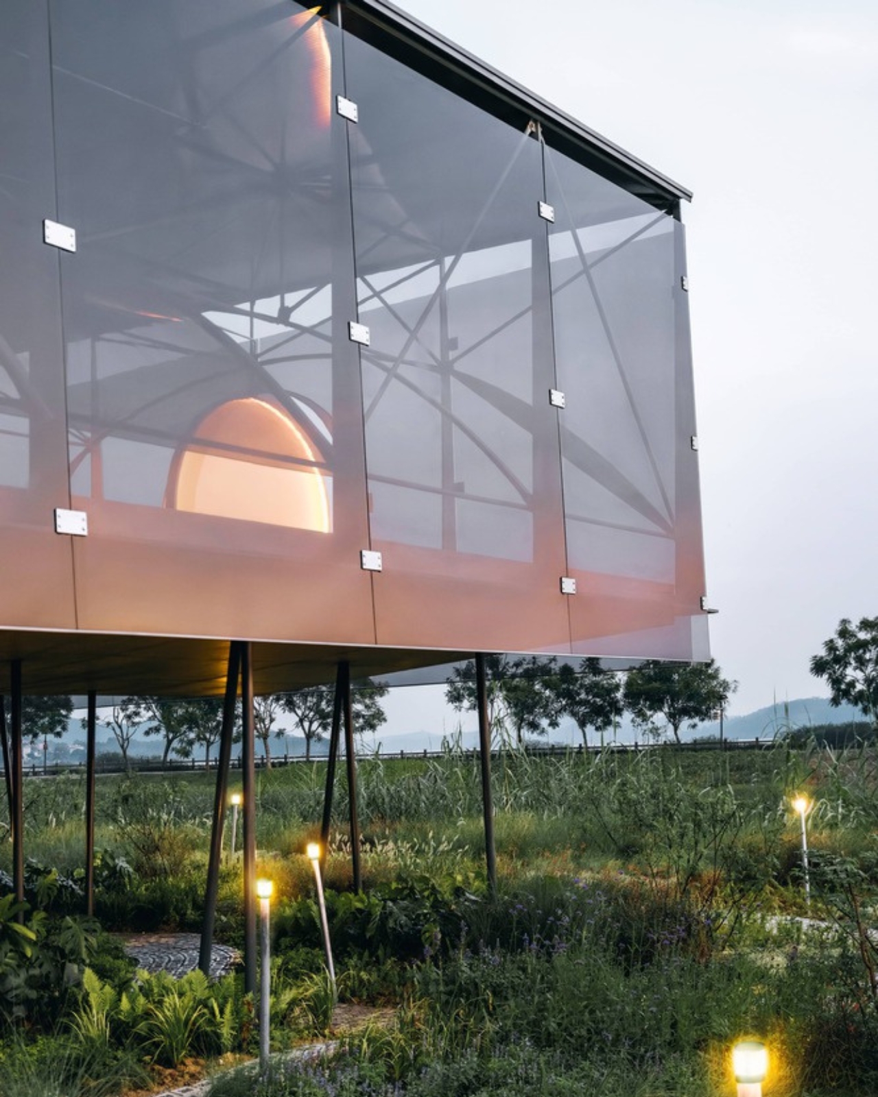 Le Pavilion a été conçu par l’Atelier Guo, un studio d’architecture basé à Shanghai, en collaboration avec les artistes Meilin Gao et Gang Xu.