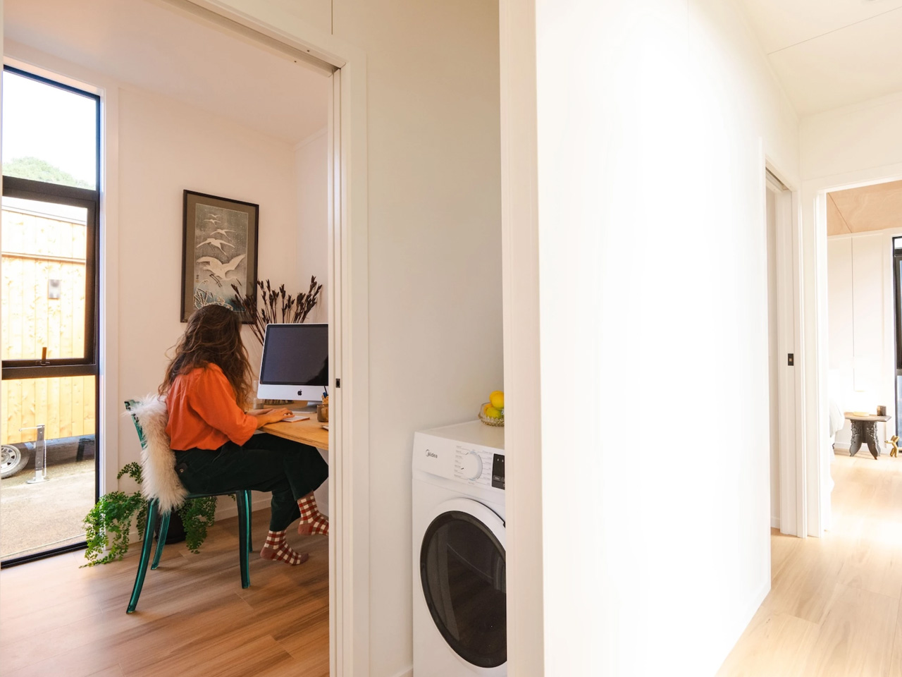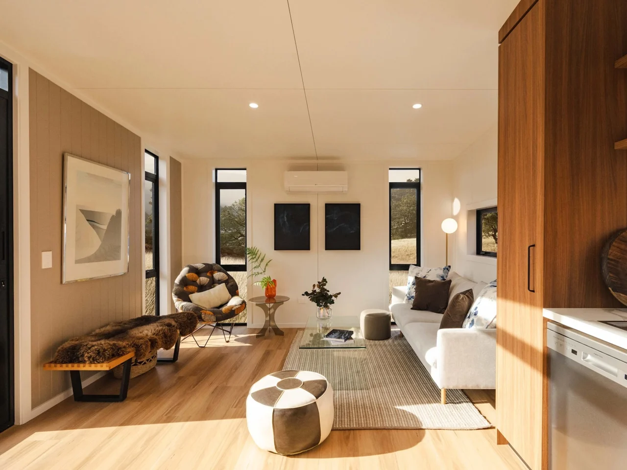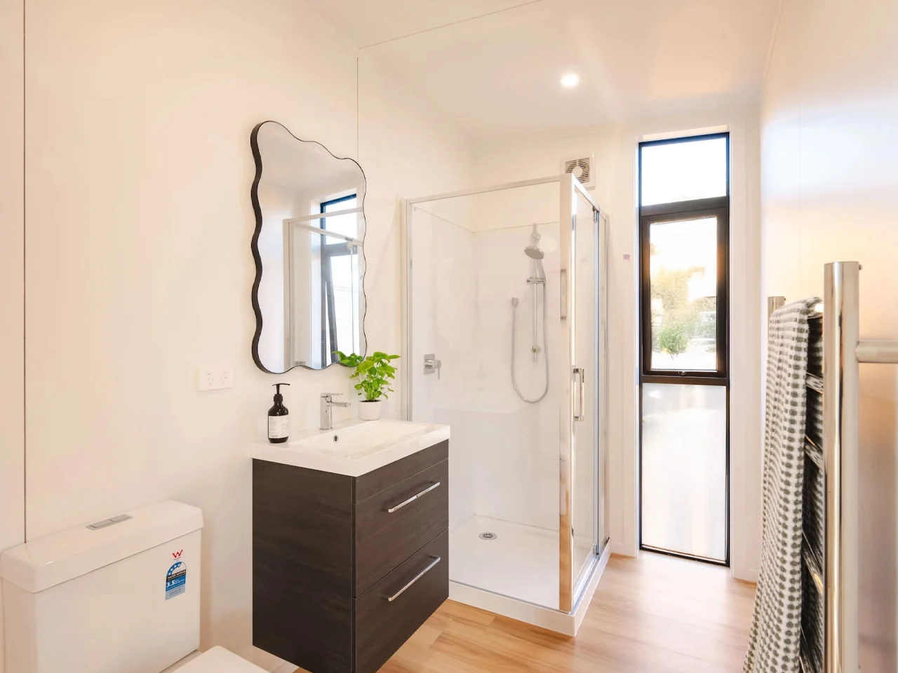 South Base Homes décrit la Natural Luxe comme « l’équilibre parfait entre un design sophistiqué et une vie pratique sur 48 mètres carrés ». Fabriquée avec fierté en Nouvelle-Zélande et conçue pour respecter les normes du Code de la construction du pays, cette maison dispose d’une isolation de premier ordre et est livrée avec une garantie de cinq ans.