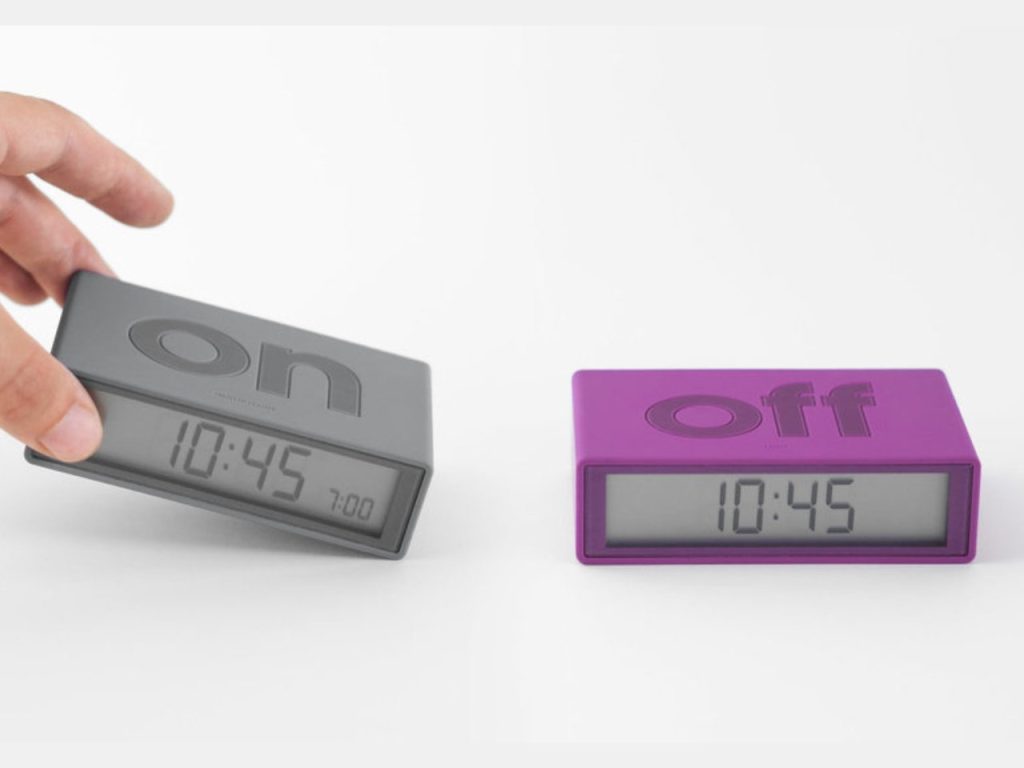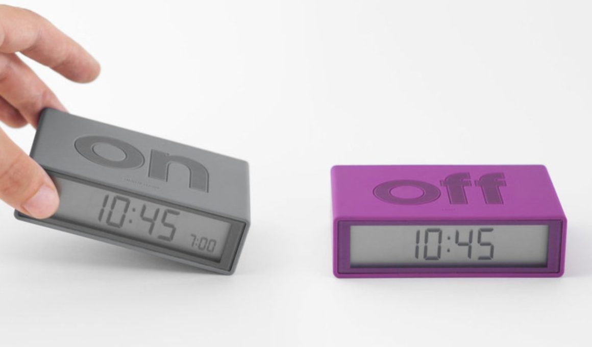 Le Flip Alarm Clock permet d’activer et de désactiver l’alarme en basculant le réveil, éliminant ainsi le besoin de boutons ou de menus compliqués.
