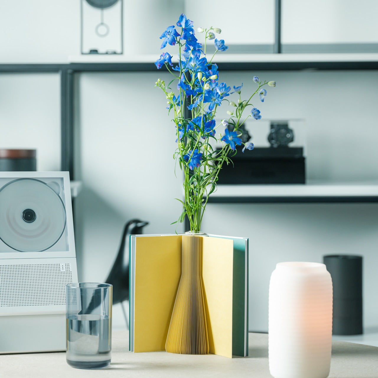 Les fleurs méritent du drame et ce vase pliable en livre le délivre dans le format le plus efficace possible. Ouvrez la couverture pour révéler des découpes en vase en trois dimensions. Fabriqué à partir de pulpe naturelle avec un revêtement résistant à l’eau, ces vases ne sont pas de simples accessoires mais fonctionnent réellement. Lorsqu’il n’est pas utilisé, ils se replient à une épaisseur de livre et se rangent à côté de vos livres.