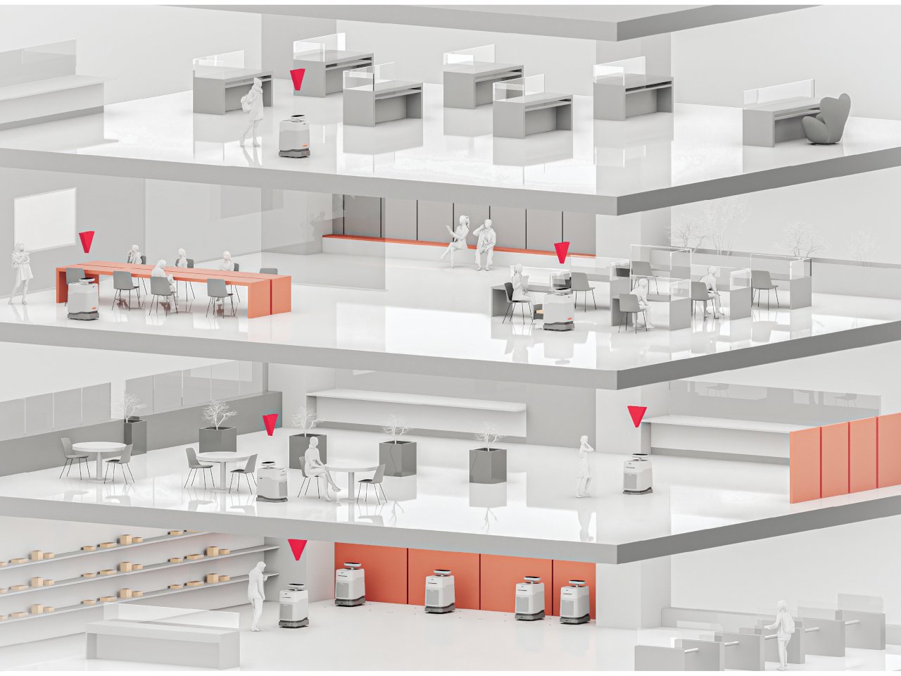 Le concept de nubo prend en charge des opérations de flotte coordonnées dans les grands immeubles de bureaux, permettant à plusieurs unités nubo de travailler ensemble pour gérer efficacement des tâches simultanées. Les employés peuvent accéder aux services à l’aide de cartes de location personnalisées pour des interactions sécurisées et traçables. Les affiches et le branding présents dans les bureaux renforcent la mission de nubo à travers le slogan « travailler plus intelligemment, pas plus durement », intégrant ainsi le robot dans la culture d’entreprise plutôt que de le considérer comme une technologie à part.