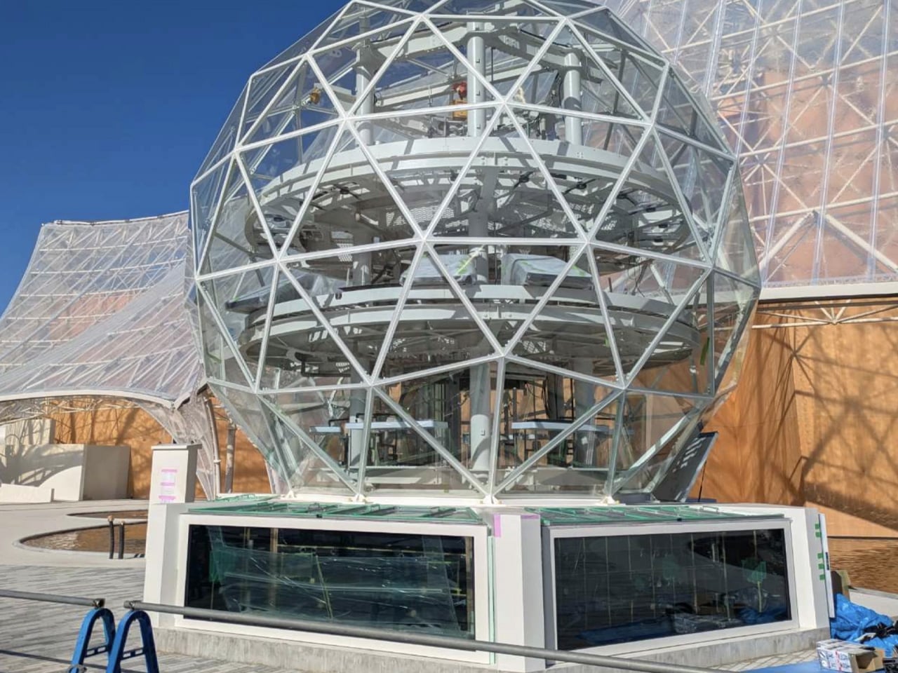 La peau extérieure de la sphère est composée de panneaux transparents en ETFE, tendus sur 245 barres structurelles en acier reliées par 76 joints. Ce cadre géodésique, construit en utilisant le système T-STAR de VikingDome, couvre 128 mètres carrés tout en ne pesant qu’un peu plus de deux tonnes. L’ensemble de la structure est arrivé sur l’île de Yumeshima sur trois palettes. Son design maximise la pénétration de la lumière solaire tout en maintenant des températures internes stables, créant un microclimat où coexistent plusieurs zones de culture.