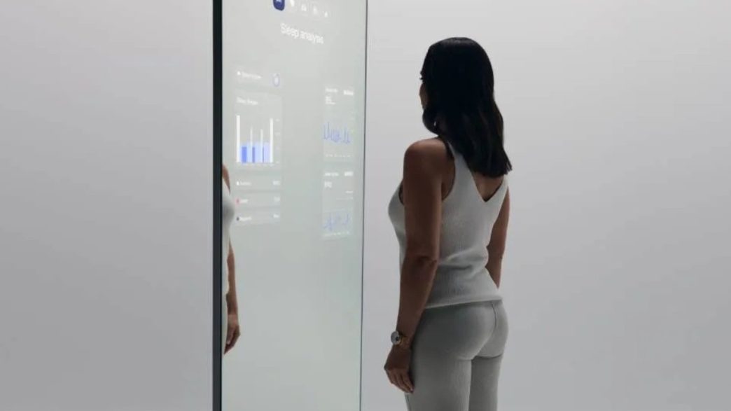Le concept Omnia est un miroir de pleine longueur avec une balance en bas qui offre une analyse de santé approfondie à 360 degrés. Il peut vérifier des éléments tels que l’ECG, la fréquence cardiaque, les tendances de poids, et même la qualité du sommeil.