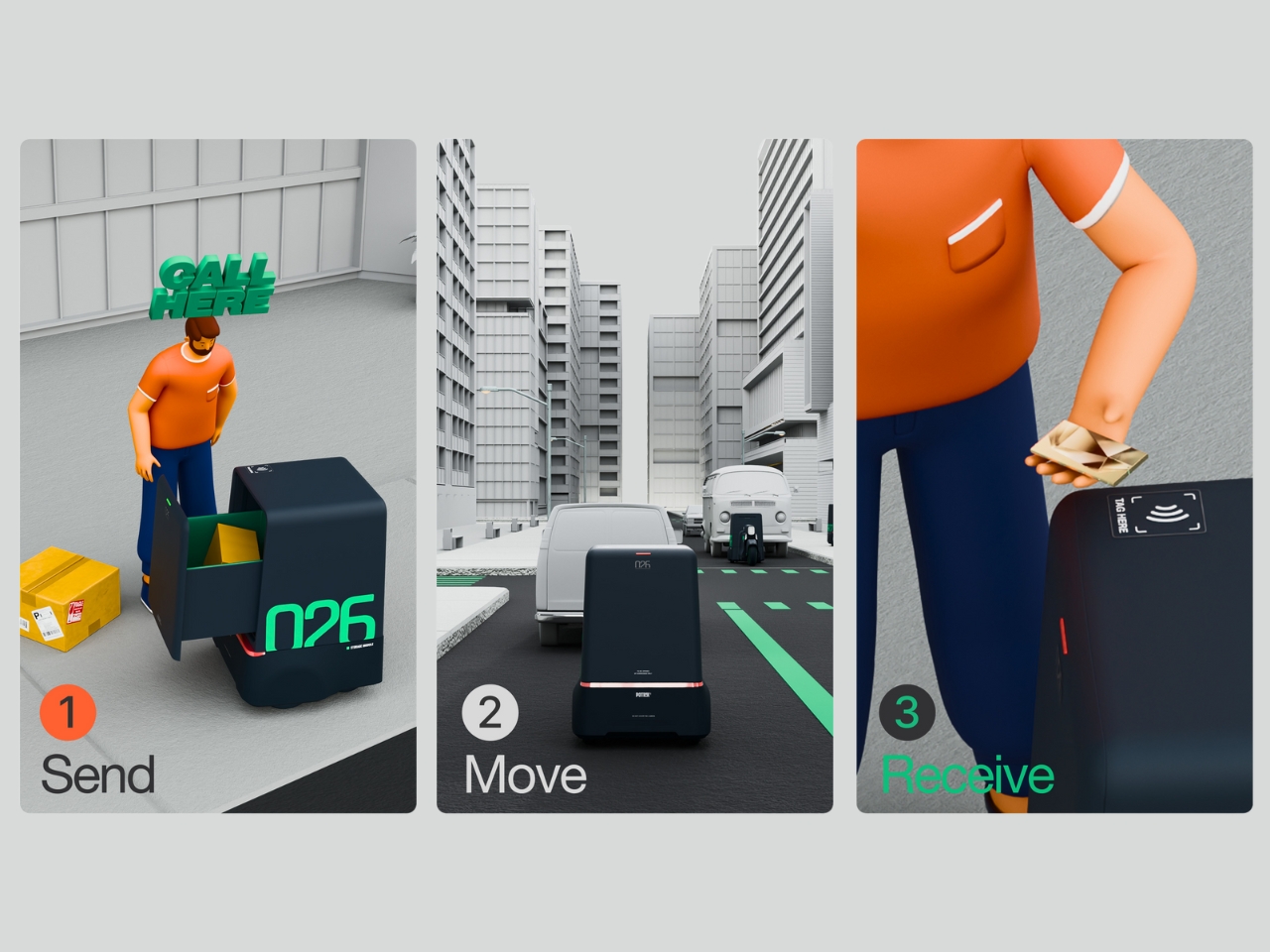 Au cœur de cette solution se trouve une mobilité modulaire et détachable, conçue pour circuler sans effort entre les routes et les trottoirs. Le système se compose de deux éléments principaux : le Module de Conduite et le Module de Rangement. Lorsque vous devez expédier un objet, il vous suffit d’effectuer une simple demande via l’application POTRIK. Le Module de Conduite, situé dans une station de recharge de la ville, se connecte ensuite avec le Module de Rangement chargé à votre point de départ choisi.
