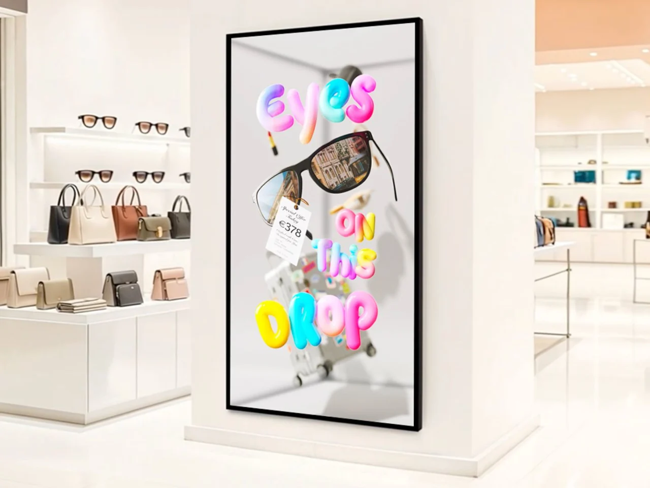 Imaginez un magasin phare ou le hall d’un musée où une figure grandeur nature ou un produit semble se tenir juste derrière la vitre, tournant pour montrer différentes perspectives. Grâce à son format portrait de 9:16 et à sa résolution 4K, les marques peuvent présenter des animations à 360 degrés ou des personnages en taille réelle, rendant l’affichage plus proche d’une installation artistique que d’une simple publicité.