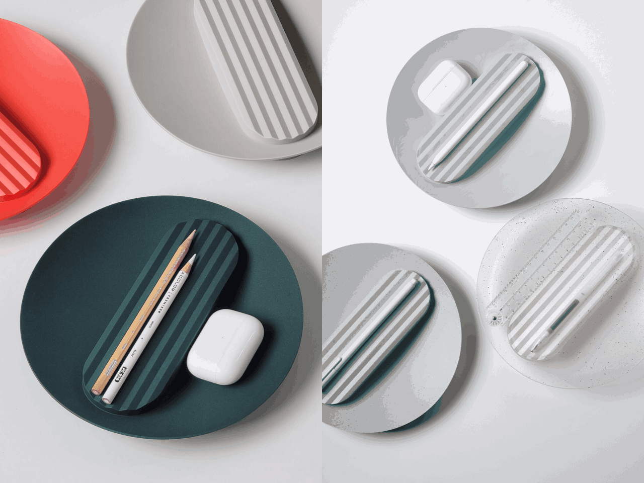 La combinaison d’une zonage clair et de surfaces tactiles permet au Tray210 recyclé de trouver sa place aussi bien sur un bureau, une étagère d’entrée que sur une table de chevet. La rainure centrale garantit que votre stylo ou votre stylet préféré est toujours au même endroit, tandis que les puits latéraux accueillent les objets qui flottent souvent, comme des cartes SD ou des bijoux. Les différentes histoires de matériaux permettent de choisir une version qui correspond à l’humeur que l’on souhaite donner à l’espace : calme, terreux, industriel ou un peu plus ludique.