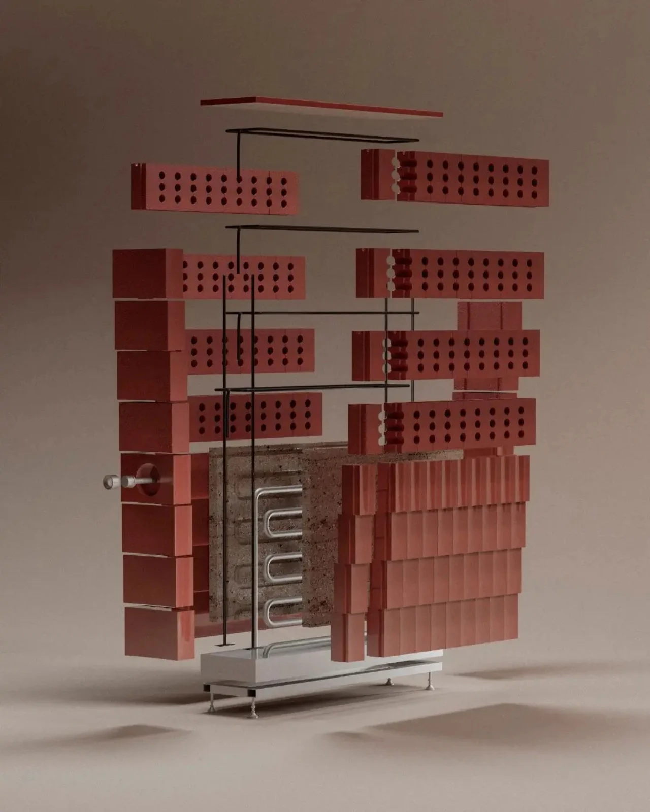 Celcius est un système de chauffage et de refroidissement basé sur la terracotta, développé à l’ECAL à Lausanne, en Suisse. Son principe est simple : la terracotta absorbe la chaleur lentement et la libère progressivement, permettant de maintenir une température agréable dans les espaces de vie.