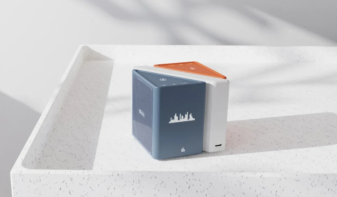 Visuellement, la conception est sûre sans être criarde. Les modules sont géométriques et compacts : une pièce plate rectangulaire, un corps de haut-parleur carré, et un coin triangulaire qui termine le dessus lorsqu’ils sont assemblés. Ensemble, ils tiennent dans la paume de votre main comme un jouet haut de gamme, et c’est précisément le but recherché. L’équipe décrit l’expérience tactile de réarranger les modules comme analogue à celle de jouer avec des blocs de construction. Cette métaphore est tout à fait pertinente. Écouter devient ainsi un acte physique plutôt qu’une simple activité passive. Plutôt que de faire glisser un curseur sur une application, vous soulevez littéralement une partie de la chanson et la repositionnez.