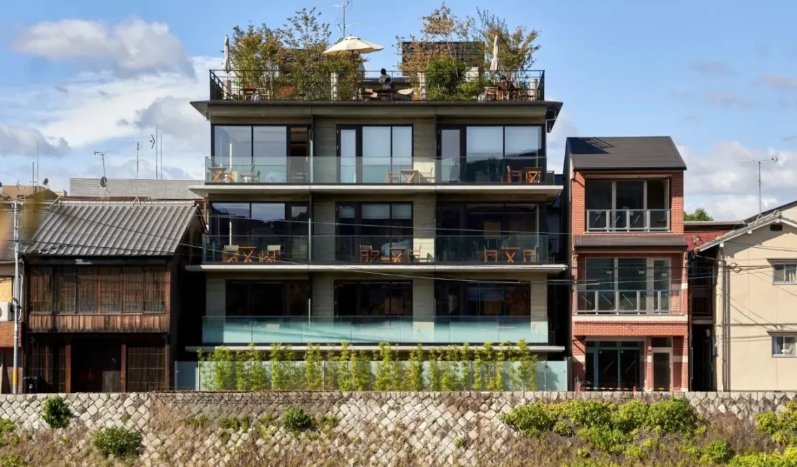 Situé le long de la rivière Kamo à Kyoto, au Japon, Genji Kyoto est un boutique hôtel de 19 chambres qui suscite fascination et respect dans le monde de l’architecture. Conçu par Geoffrey P. Moussas de Design 1st, cet architecte américain formé au MIT vit à Kyoto depuis 1994. Ce détail est fondamental.