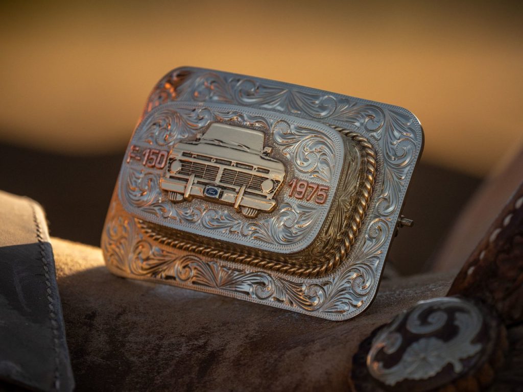 Le design attire immédiatement l’attention par sa construction robuste et son travail du métal inspiré de l’ouest. Le logo Ford se trouve en position proéminente aux côtés de motifs classiques de boucles qui évoquent les rodéos, les ranchs et les routes ouvertes. Le poids substantiel et la finition polie confèrent au Truckle la sensation premium d’un véritable vêtement western plutôt que d’un simple produit promotionnel bon marché.