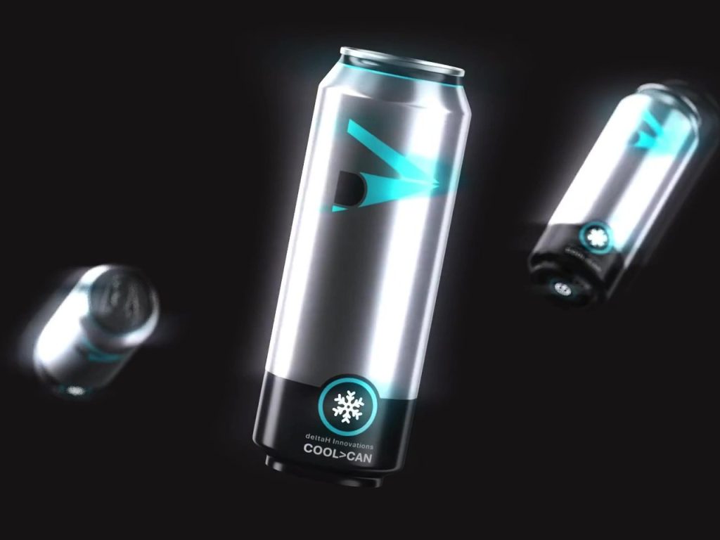 La canette auto-refroidissante est un contenant innovant de Delta H Innovations qui permet de transformer une boisson à température ambiante en une boisson parfaitement refroidie en environ deux minutes, simplement en appuyant sur un bouton.