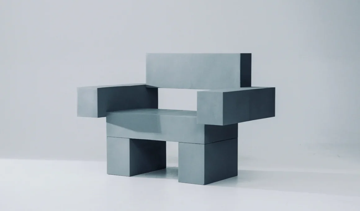 La construction de cette chaise repose sur un système de panneaux modulaires. Chaque bloc imprimé en 3D s’imbrique dans un agencement conçu pour minimiser le gaspillage de matériau tout en maintenant une masse structurelle épurée. La finition de la chaise, d’un gris froid que Baev appelle « Kyoto Fog », évoque l’aspect du béton ou de la pierre mate. Dans un espace de studio minimaliste ou dans un loft brut, cette chaise ancre l’environnement avec une autorité silencieuse, tandis que dans un salon plus traditionnel, elle pourrait dominer les lieux d’une manière que tous les foyers ne souhaiteraient pas.
