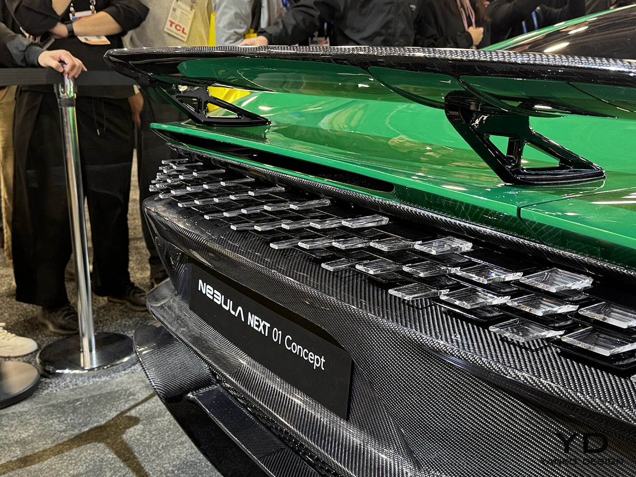 La Nebula 1 a attiré l’attention lors de l’événement avec sa teinte verte et son revêtement en fibre de carbone. La partie avant évoque les supercars italiennes avec son capot plongeant, renforçant ainsi son caractère puissant. Les piliers en fibre de carbone réitèrent cette approche axée sur la performance. L’arrière du véhicule, quant à lui, équilibre la silhouette avec sa ligne de toit fluide, ses feux arrière sur toute la largeur et son diffuseur à double couche.