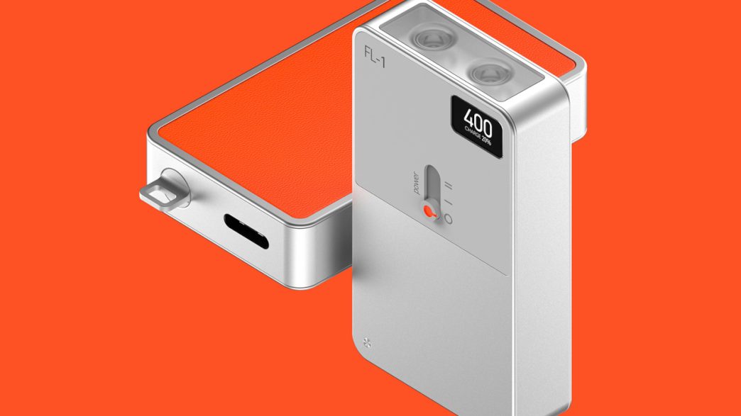 Outre son esthétique distincte, le FL-1 offre également des caractéristiques intéressantes. Sa forme rectangulaire permet d’intégrer non pas une, mais deux lampes LED, qui peuvent être allumées individuellement ou simultanément grâce à un mécanisme de glissement simple. Par ailleurs, un affichage indique le niveau de charge de la batterie, afin de vous éviter toute surprise désagréable. Le chargement s’effectue via un port USB-C, ce qui représente l’unique point de référence quant à l’échelle de l’objet.