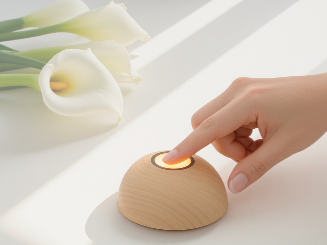 La simplicité d’utilisation se prolonge à la façon dont on met en marche la lumière. Un simple toucher active un doux éclairage, créant une atmosphère intime et relaxante, semblable à celle d’une bougie, mais sans les dangers liés au feu ou à la cire fondue. Il y a quelque chose de profondément satisfaisant dans l’activation tactile. Cela renforce notre connexion avec l’objet et notre intention de créer l’ambiance dans notre espace.