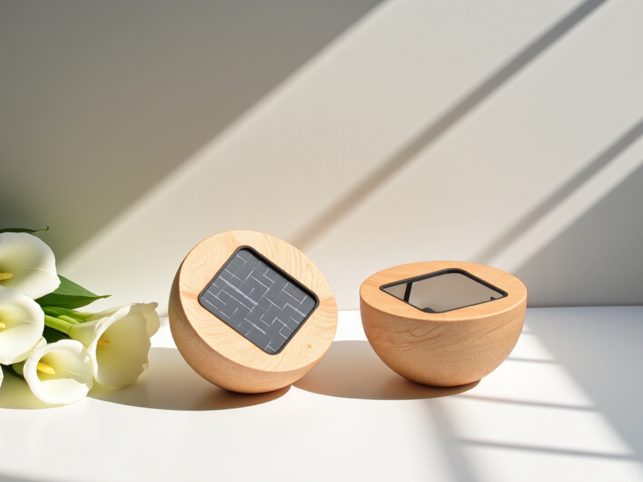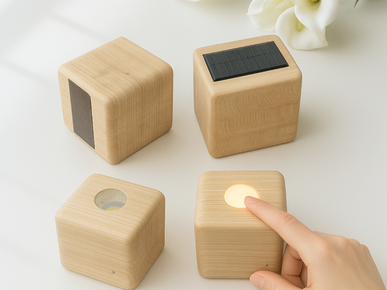 D’apparence, Sula évoque une bougie décorative modernisée pour le XXIe siècle. Avec sa forme organique et arrondie, elle est agréable à tenir en main. Sa finition en bois chaleureux lui confère un aspect luxueux et artisanal, si bien qu’on a envie de l’exposer même lorsqu’elle n’est pas allumée. Mais en la retournant ou en la posant sur le côté, on découvre son secret : un panneau solaire caché qui capte la lumière du soleil et stocke l’énergie dans sa batterie au lithium.