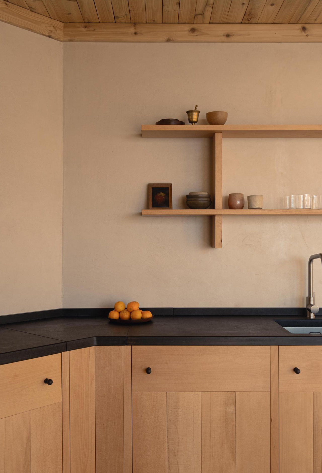 À l’intérieur, des angles doux se déploient tout au long de la maison, créant des espaces qui s’entrelacent tout en conservant leur définition. L’inspiration vient des « blackhouses » traditionnellement vernaculaires à l’île. Un porche d’entrée, une zone utilitaire, et une salle de bain illuminée par le ciel occupent le centre du plan, tandis que la chambre s’étend vers le nord-ouest et le salon et la cuisine remplissent la moitié orientale, maximisant ainsi ces vues maritimes dramatiques. Bien que la superficie soit modeste, la maison se révèle luxueuse par sa connexion à l’environnement environnant, chaque décision spatiale étant soigneusement réfléchie pour enrichir l’expérience de vie dans cet endroit spectaculaire et isolé.