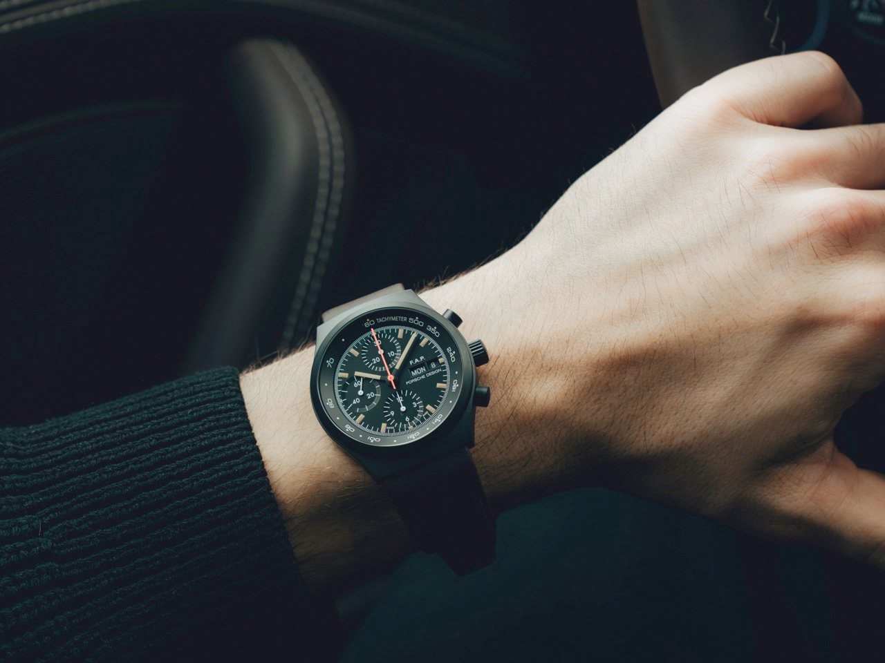 Le Chronographe affiche un boîtier en titane noir de 40 à 41 millimètres, certifié COSC, avec le mouvement automatique WERK 01 et une fonction chronographe flyback. Avec une étanchéité de 10 bars, cette montre est conçue pour résister aux rigueurs du quotidien. Son ergonomie, provenant du design de Porsche, assure qu’elle reste parfaitement à plat sur le poignet, évitant ainsi de ressemblances avec des montres de plongée.