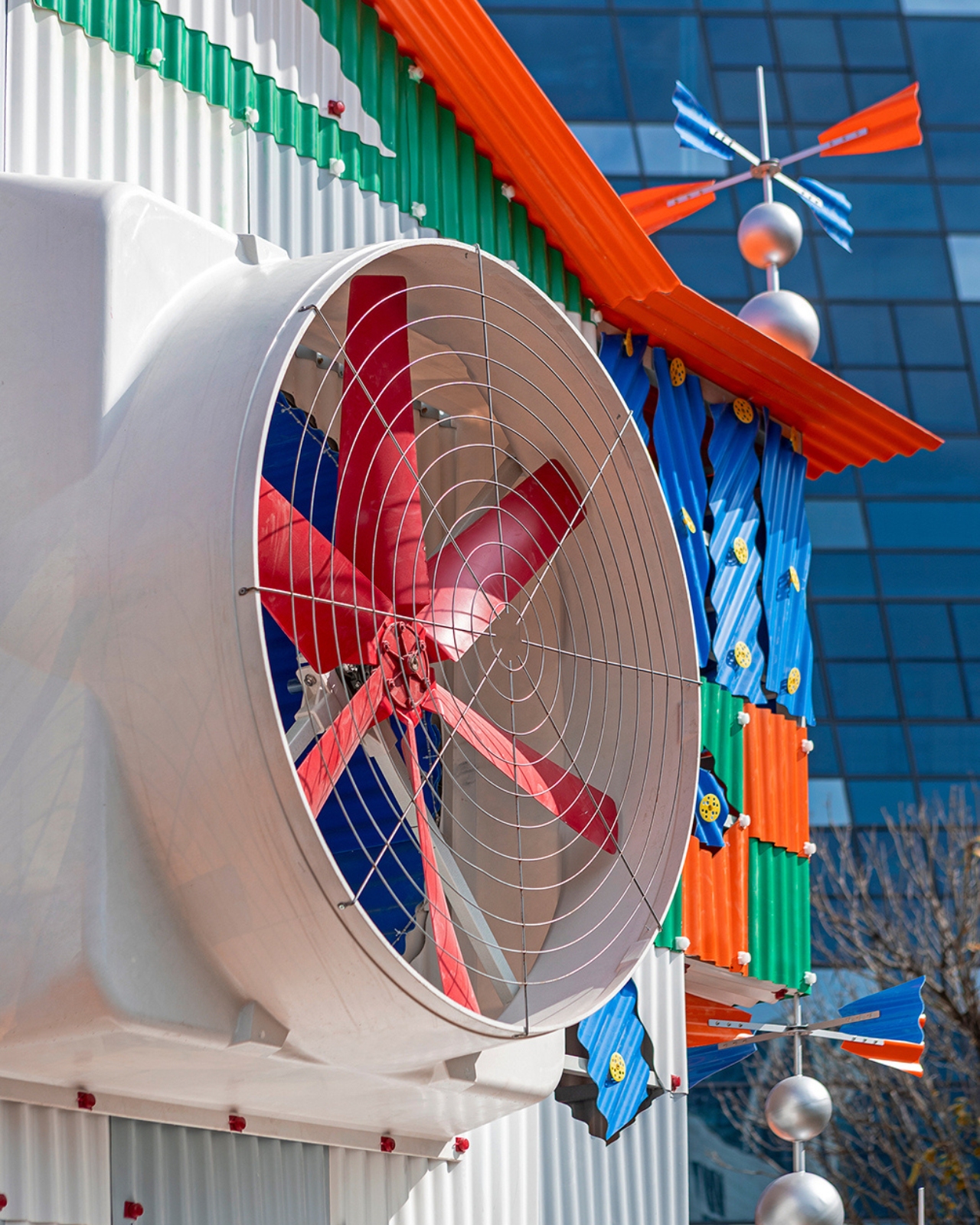 Clock House No. 2 revisite cet échange historique à travers un prisme contemporain. Au lieu d’utiliser des engrenages en laiton et des ressorts délicats, le studio a opté pour des composants industriels à faible coût. La structure évoque les façades superposées et les toits carrelés typiques des habitations quotidiennes de la province du Guangdong, mêlant l’architecture vernaculaire locale avec la logique ornementale des horloges automates historiques. Le résultat est à la fois familier et étranger.
