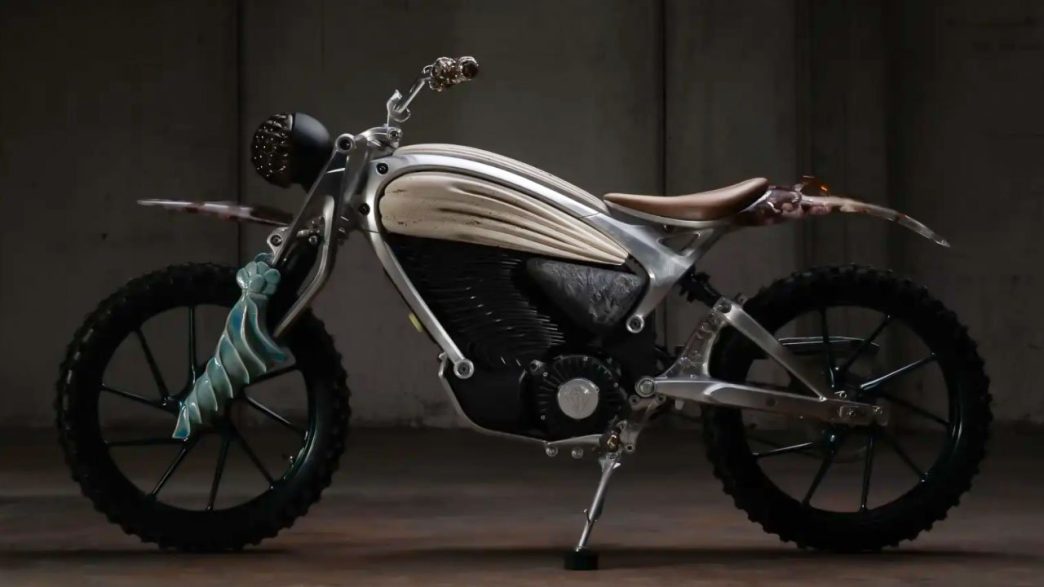 La moto utilise des matériaux naturels comme l’argile, la résine, la pierre et le cuir. Ces éléments sont intégrés dans le cadre en aluminium forgé et le boîtier de batterie en magnésium, contribuant à l’esthétique artistique de la moto.