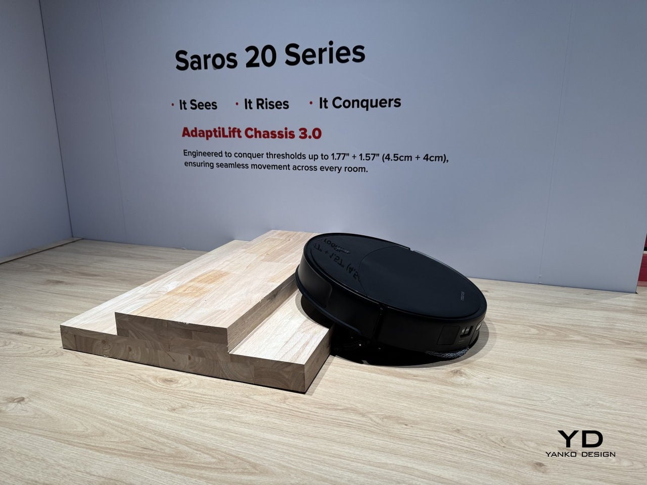 Le châssis AdaptiLift 3.0 est la composante mécanique de cette intelligence, soulevant et ajustant trois roues indépendamment pour franchir des seuils à deux couches jusqu’à 8,5 cm de hauteur, grimper des tapis de 3 cm d’épaisseur, et se libérer lorsqu’il est coincé. Les configurations où les bords de balcons, les tapis épais, et les transitions à niveaux multiples piègent des robots de moindre capacité deviennent des terrains gérables. Le Saros 20 apprend la meilleure façon de franchir chaque seuil et s’en souvient, considérant les obstacles comme des énigmes à résoudre plutôt que des impasses.
