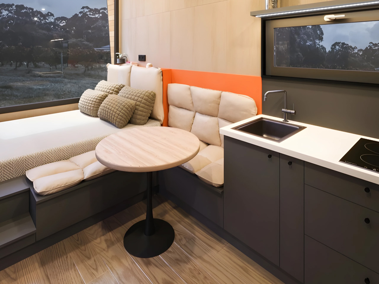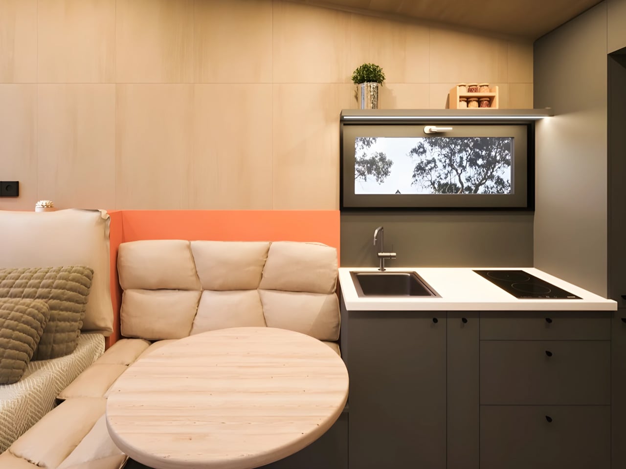 Ce qui distingue l’Ambra, c’est sa remarquable polyvalence associée à un savoir-faire professionnel. Les acheteurs peuvent choisir de la monter sur un châssis de remorque, créant ainsi un refuge mobile parfait pour ceux en quête d’indépendance géographique. Alternativement, elle fonctionne parfaitement en tant qu’habitat stationnaire sur une fondation permanente pour ceux désireux d’avoir une adresse fixe. TinyKiwi.house apporte une expertise en architecture et en design d’intérieur à chaque construction, avec une attention au détail visible dans les finitions raffinées et la planification intelligente de l’espace. Le niveau unique élimine les aménagements en mezzanine, courants dans de nombreuses tiny houses, rendant le quotidien plus accessible et agréable, sans avoir à gravir des échelles fatigantes après une longue journée.