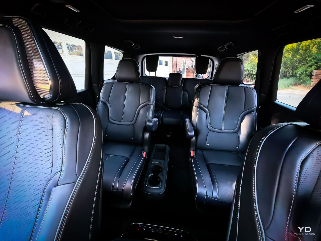 Le confort est là où le QX80 s’impose de manière décisive. La qualité des matériaux, l’éclairage d’ambiance, le refroidissement biométrique, les fauteuils de capitaine disponibles et le système audio Klipsch créent un environnement qui n’existe tout simplement pas dans les monospaces à n’importe quel prix. L’expérience de conduite se ressent plus substantielle. L’ambiance de la cabine est nettement plus premium. Vous passez des heures dans ce véhicule chaque semaine, et ces heures sont plus agréables dans le QX80.