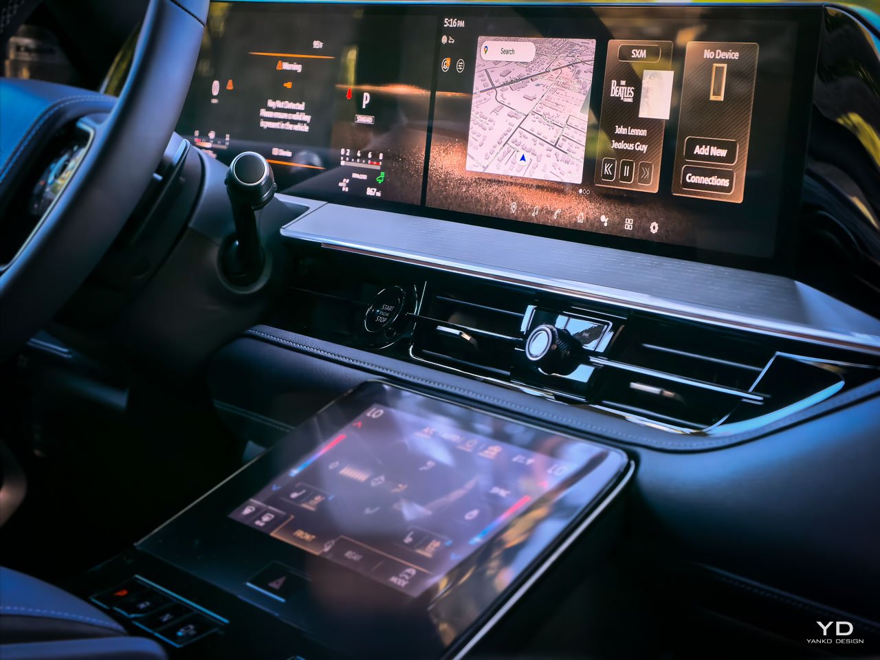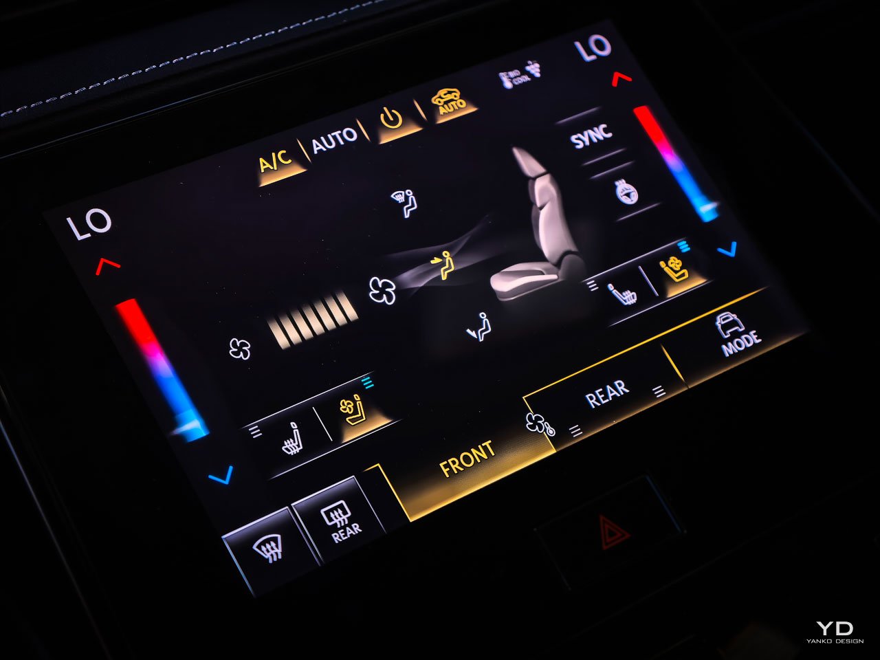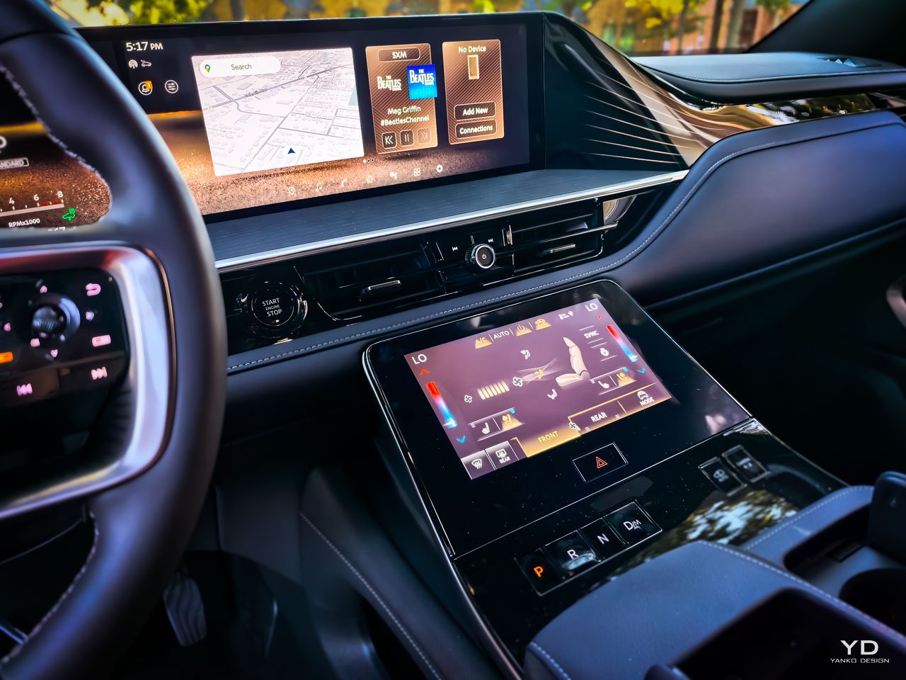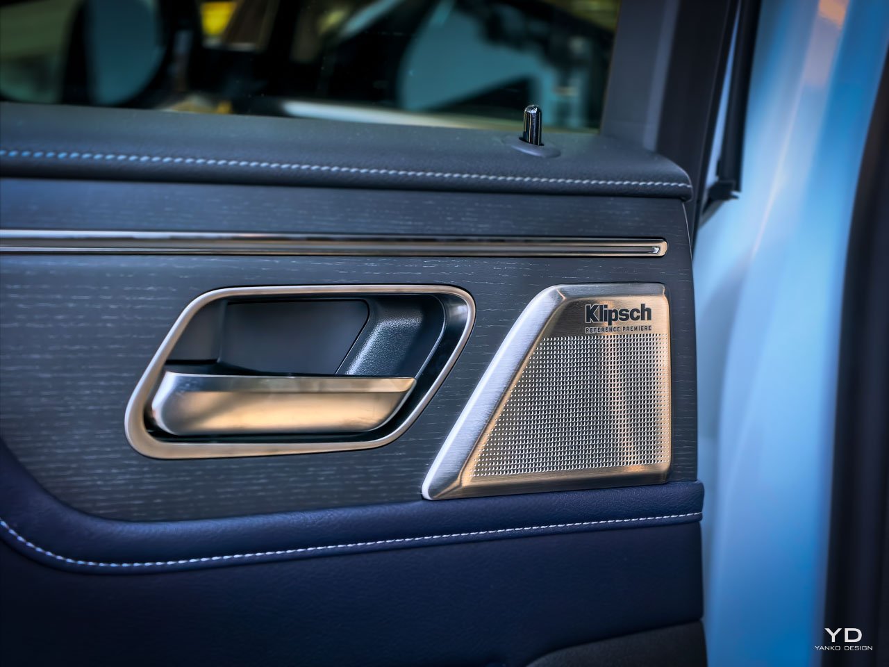 Le divertissement à la seconde rangée inclut des écrans optionnels et des commandes de climatisation accessibles via un panneau à écran tactile. Les passagers contrôlent leur propre environnement sans demander au conducteur de faire des ajustements. Le système audio Klipsch Reference Premiere à 24 haut-parleurs offre une excellente qualité sonore avec une séparation claire et une bonne réponse des basses.