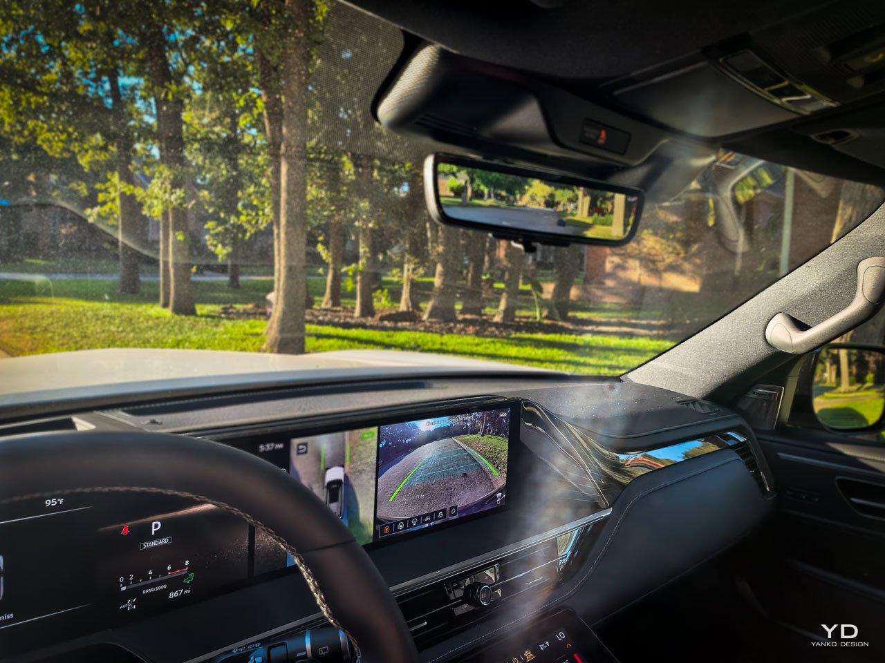 Les poignées de porte affleurantes sont élégantes mais parfois frustrantes. Elles s’étendent automatiquement lorsque vous vous approchez avec la clé, mais parfois le timing semble décalé. Des poignées traditionnelles seraient plus fiables, surtout par temps froid ou lorsque vous transportez des objets. Se garer avec ce véhicule nécessite de la vigilance. Avec ses 536 cm de long et 211 cm de large, il vaut mieux privilégier les places de parking spacieuses. Se garer dans des espaces urbains étroits peut s’avérer délicat.