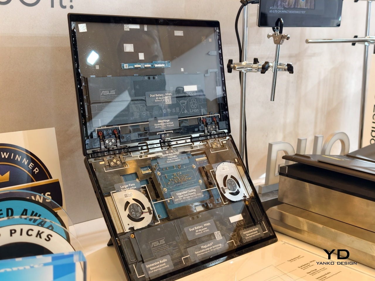 Le principal affichage est un ASUS Lumina Pro OLED, avec des niveaux de luminosité impressionnants, et les deux écrans sont très proches l’un de l’autre grâce à de nouveaux biseaux plus fins.