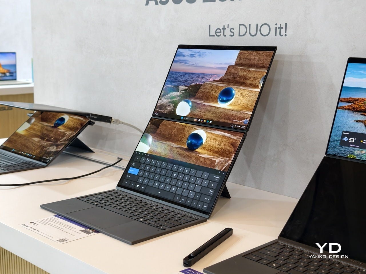 Le design à double écran combine deux moniteurs indépendants reliés par une charnière, contrairement aux modèles pliables qui offrent une surface unique vulnérable. Cela permet une utilisation plus versatile : pour les tâches quotidiennes, vous pouvez opérer en mode ordinateur portable classique ou en mode tente pour partager votre écran. De plus, la possibilité de détacher le clavier offre encore plus de flexibilité, ce qui séduira les professionnels en quête de productivité.