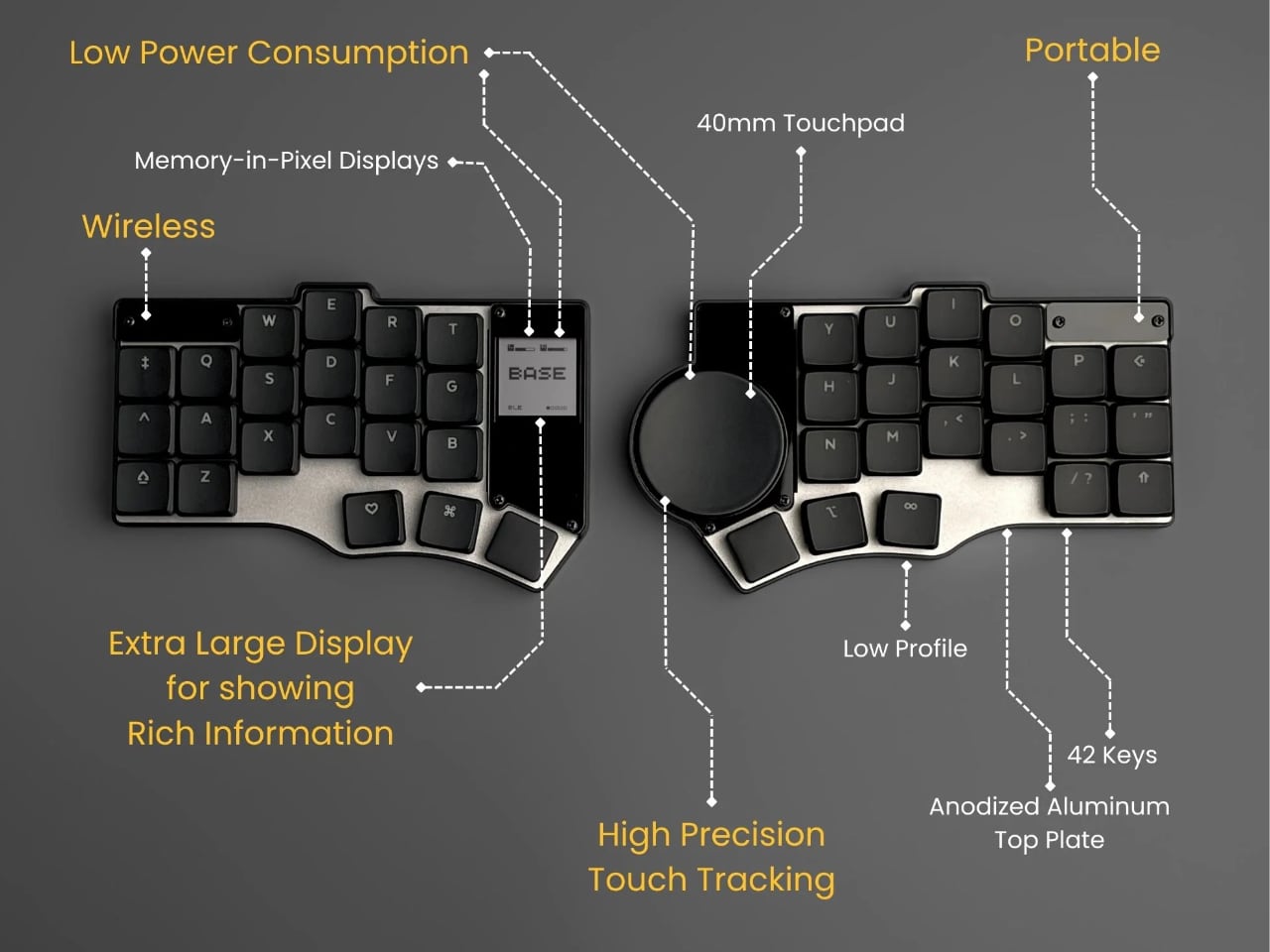 L’affichage mémoire-en-pixel sur la moitié gauche illustre l’attention portée à l’efficacité dans la conception. Cette technologie, dérivée de l’ingénierie des montres connectées, ne rafraîchit que les pixels modifiés, réduisant ainsi considérablement la consommation d’énergie par rapport aux écrans conventionnels. La durée de vie de la batterie peut atteindre 4 000 heures sur une cellule de 1 500 mAh modeste grâce au firmware ZMK. Ce chiffre n’est pas théorique, car ZMK optimise l’efficacité sans fil avec une gestion énergétique agressive, mettant le clavier en veille profonde entre chaque pression de touche.
