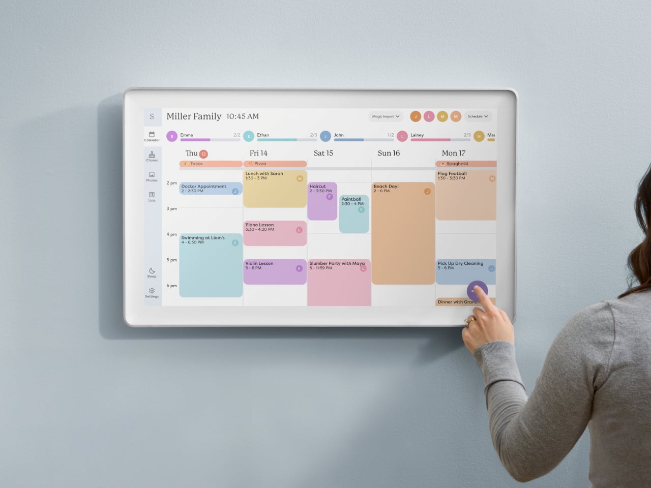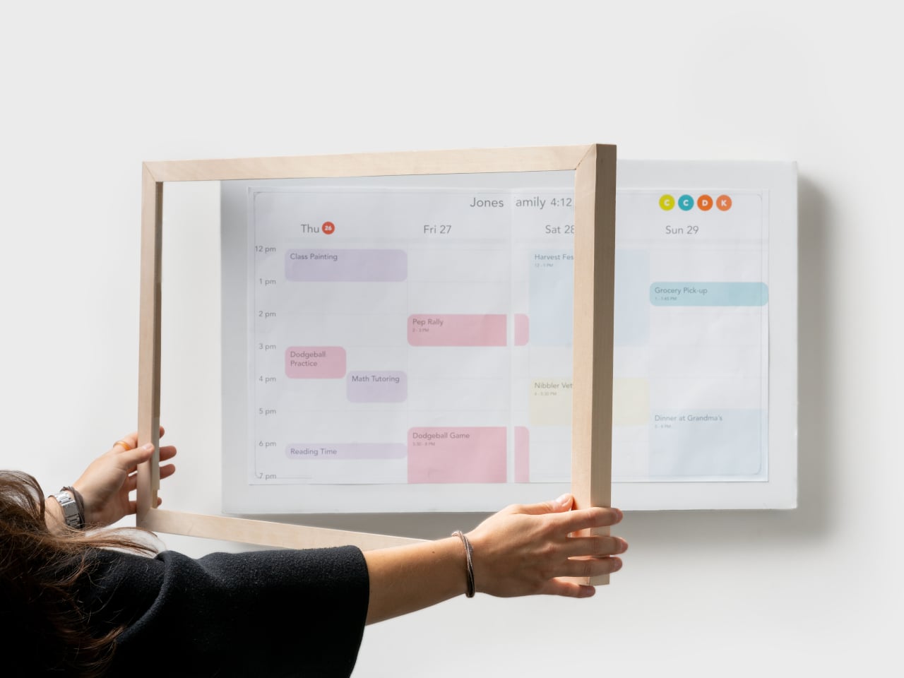 Le Calendrier Max facilite la vie quotidienne. Au cours des matinées chargées, chaque membre de la famille jette un coup d’œil au calendrier sur le chemin du café. Les événements colorés affichent qui fait quoi, des listes de tâches et des plans de repas se trouvent à côté du planning. Tout cela est synchronisé avec les calendriers numériques que chacun utilise déjà sur son téléphone. Plus besoin de fouiller dans des applications ou de consulter plusieurs sources : le plan de la journée est affiché de manière suffisamment visible pour que personne ne puisse prétexter avoir oublié le match de football.
