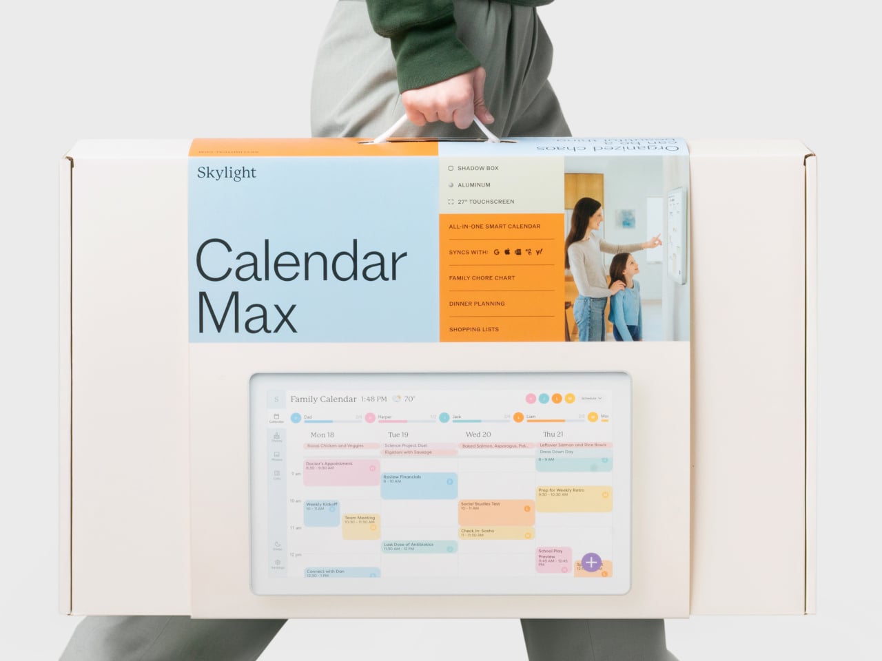 Le Calendar Max de Skylight est un calendrier numérique mural de 27 pouces conçu pour être un hub central pour la famille. Il est monté au mur et se présente sous la forme d’un cadre flottant, permettant de l’intégrer à la décoration.