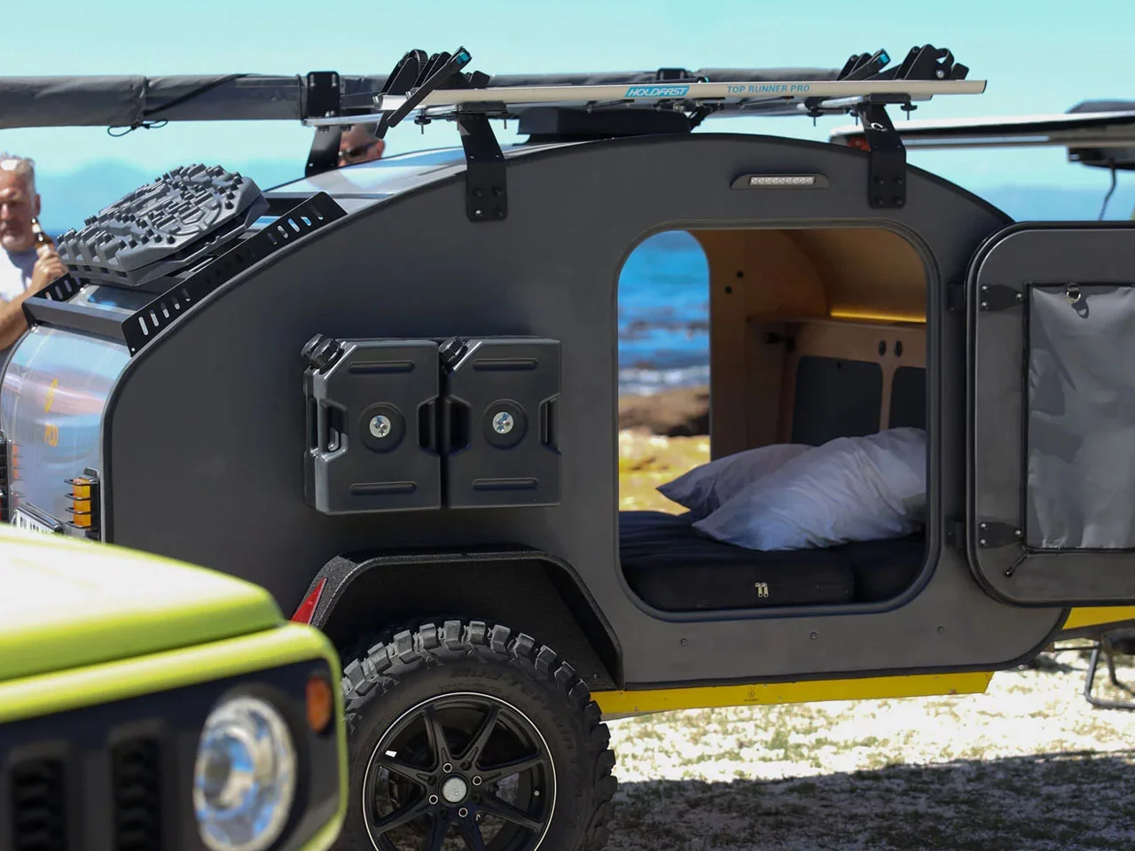 Les remorques Golf disposent d’options de carrosserie normales et extra larges, permettant une capacité de charge allant jusqu’à 200 kg sur le toit. Cela ouvre la possibilité d’installer une tente de toit, parfait pour les escapades en plein air. La série comprend trois modèles : Cricket, Cricket Lite et Cricket Max. Le modèle Max est conçu pour les excursions prolongées hors réseau grâce à son espace optimisé pour un lit double.