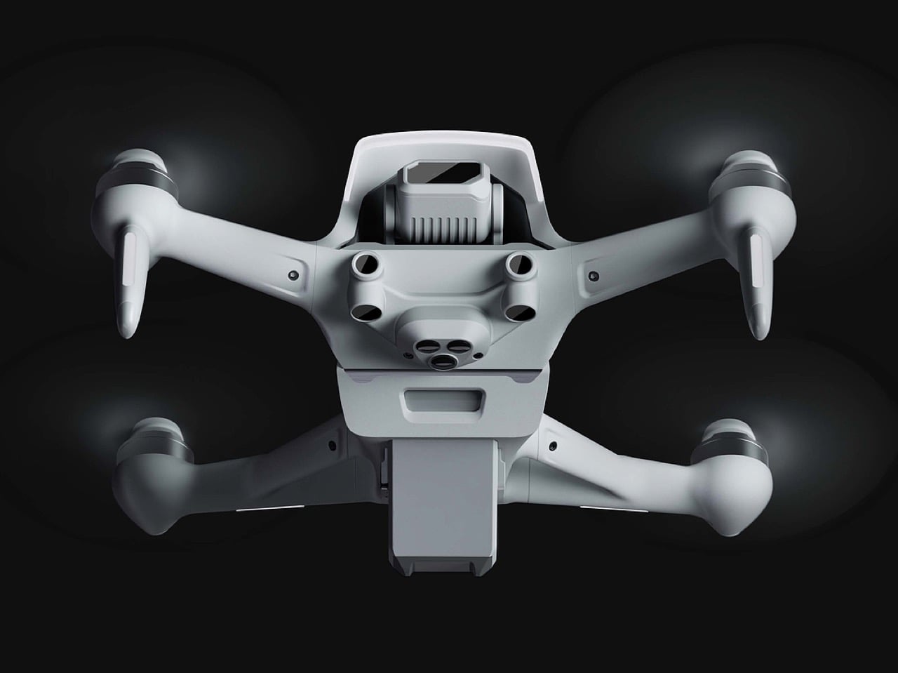 Le génie de ce design réside dans sa capacité à traduire la logique d’ingénierie de DJI en un langage visuel épuré. Le concept d’« empilement structurel » domine ici, chaque composant principal étant traité comme un module autonome disposé dans un ordre vertical. La caméra et le stabilisateur occupent un nez dédié, suivis par l’unité de contrôle de vol et les systèmes de dissipation thermique, le tout sous un long toit obscur, tandis que la batterie se fixe à l’arrière en une masse solide. Cette approche phénoménale apporte un ordre architectural à l’anatomie du drone, rendant la technologie accessible et organisée.