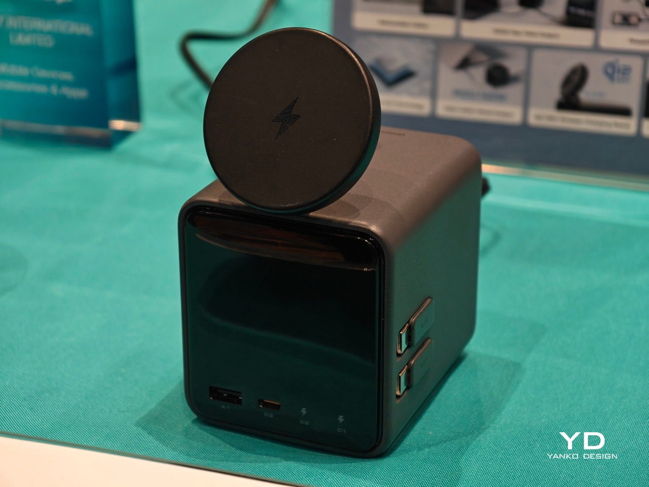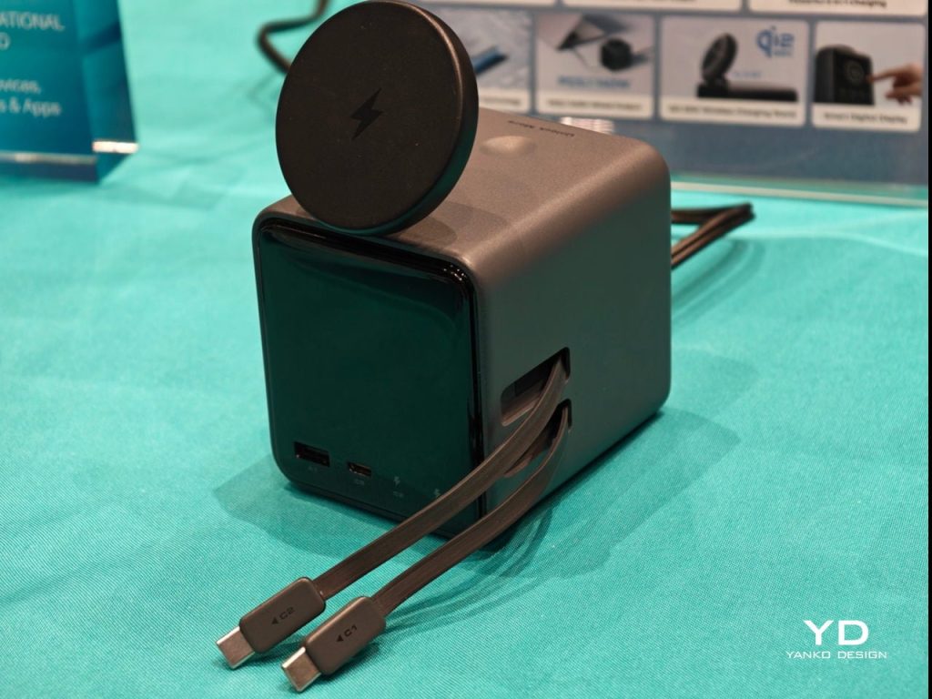 Les deux câbles USB-C rétractables s’allongent jusqu’à 75 cm lorsqu’ils sont nécessaires et se rétractent à l’intérieur du cube quand ils ne sont pas utilisés. Cela transforme l’aspect du bureau : plus de câbles en désordre attendaient d’être utilisés, mais une simple traction suffit pour charger un appareil comme une tablette ou un appareil photo. Le mécanisme de rétractation apporte une satisfaction visuelle et fonctionnelle, réduisant le stress visuel dans l’espace de travail.